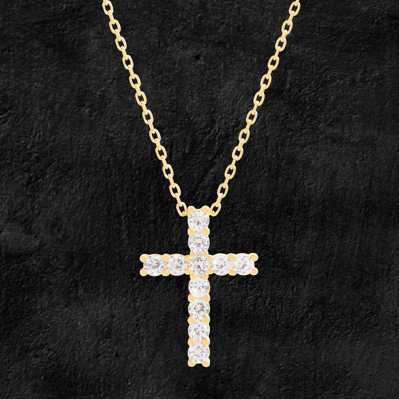 • Patterns or Textures: The chain showcases a refined oval-link pattern, providing a subtle, continuous flow. The cross itself presents a captivating texture, formed by multiple individually set round diamonds that create a dynamic, shimmering surface, radiating light from every angle.