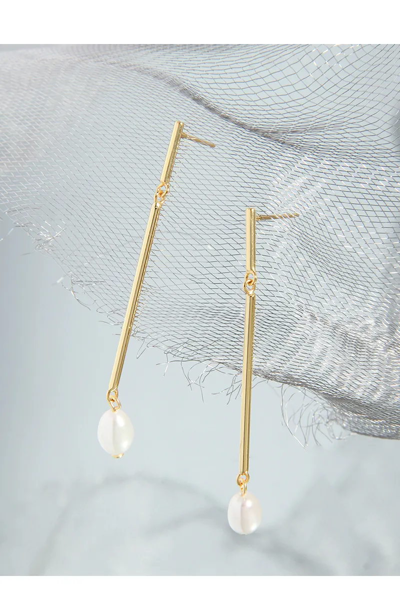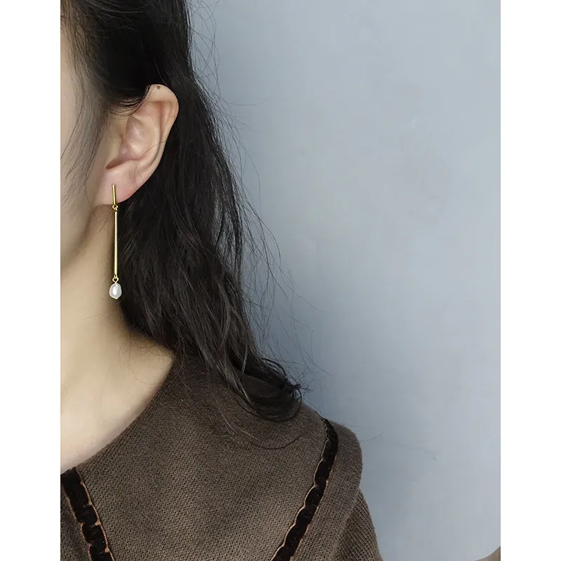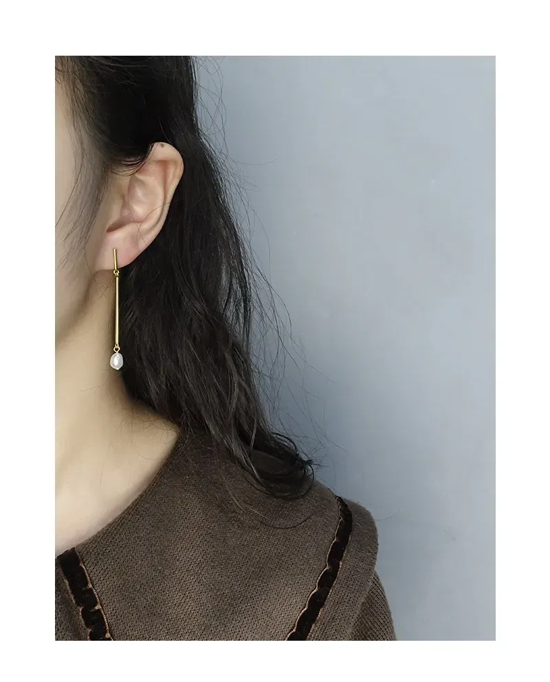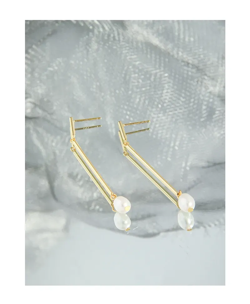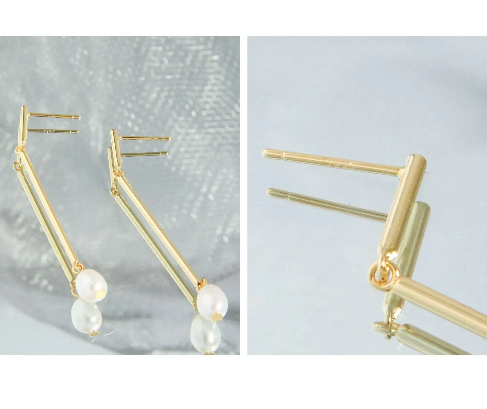 • Style: A sophisticated dangle design features sleek, polished gold bars that gracefully descend, culminating in an organically shaped pearl. This minimalist yet elegant style evokes a sense of refined beauty, reminiscent of celestial drops.