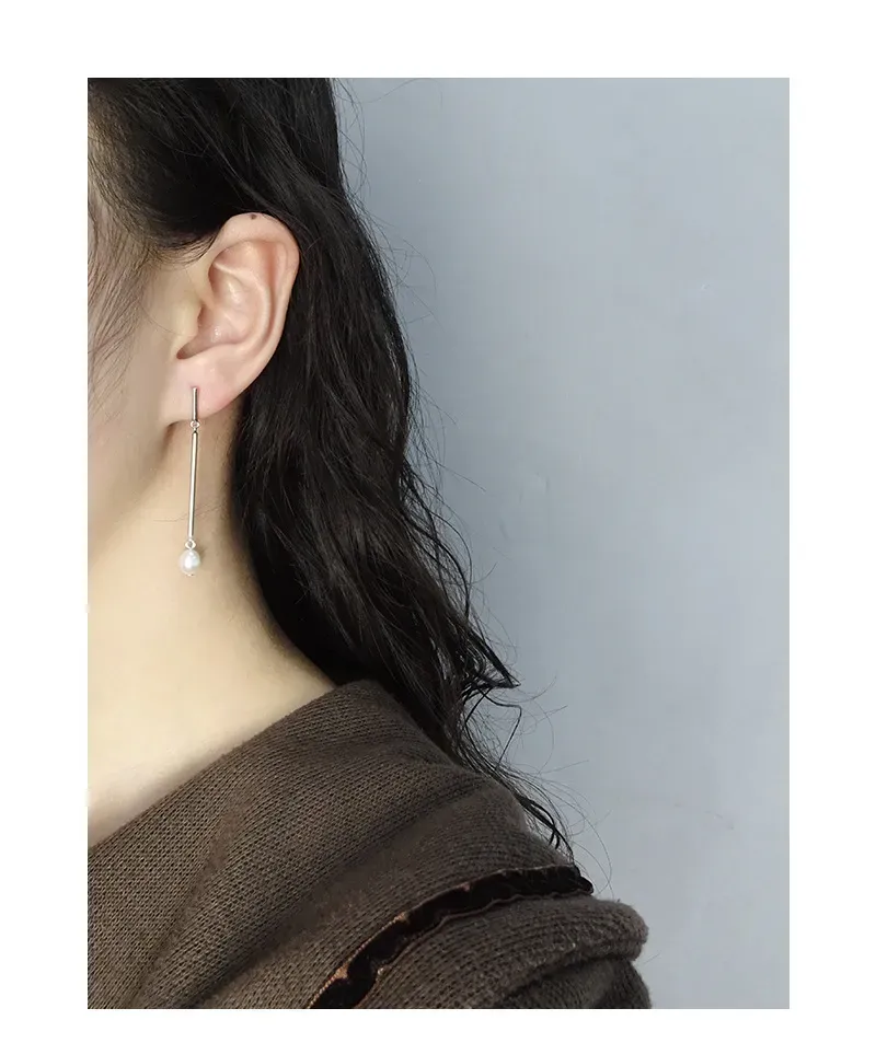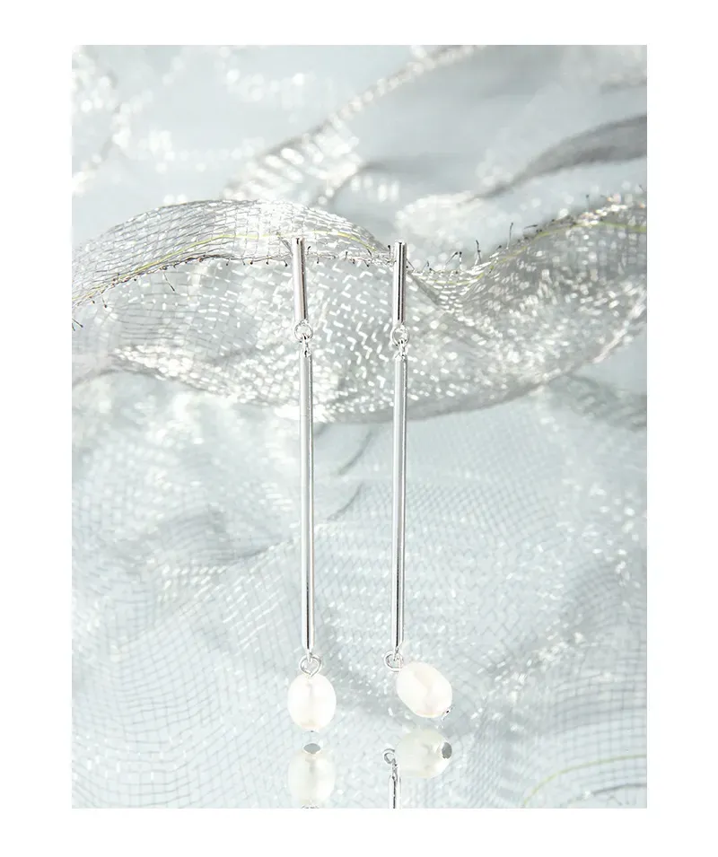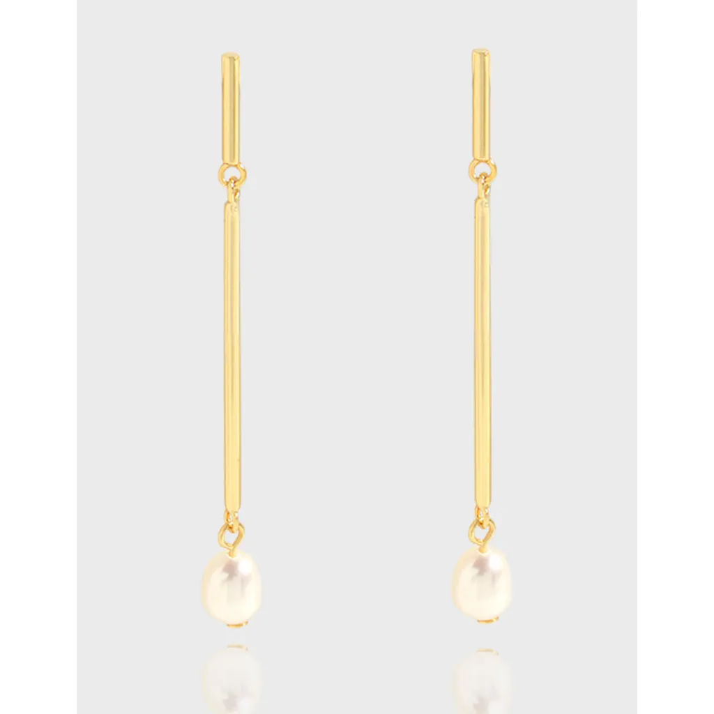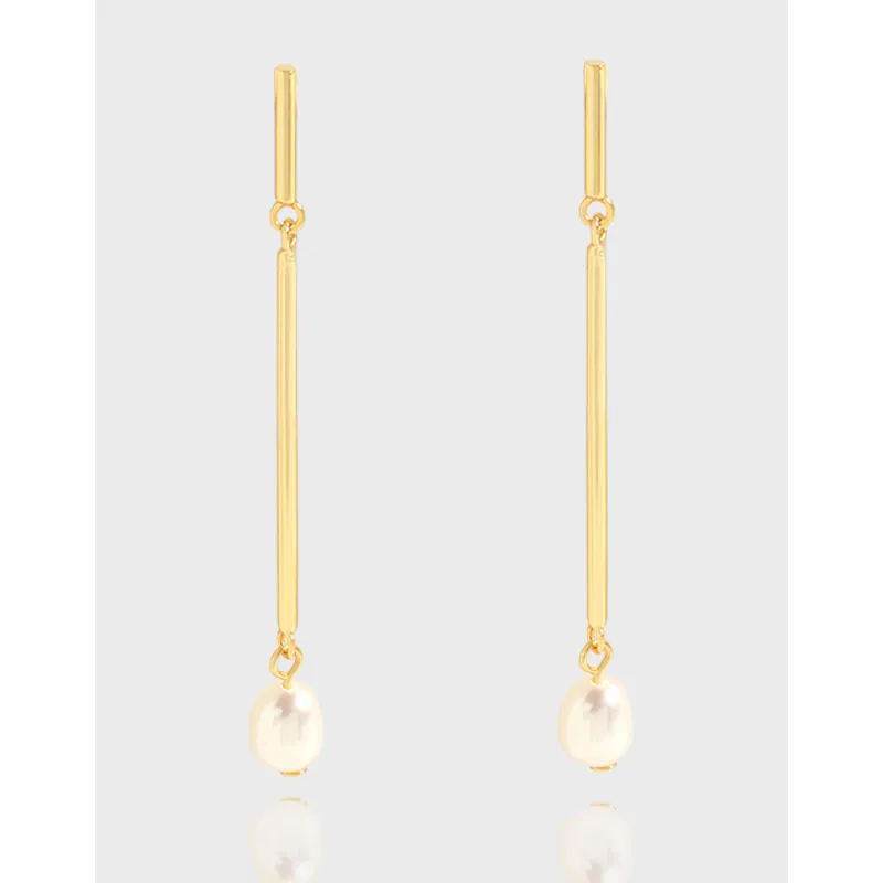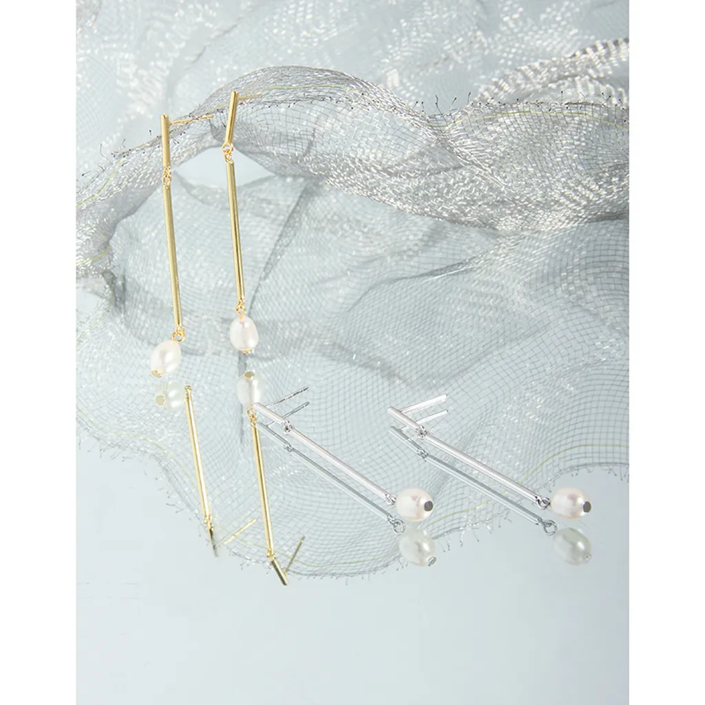 • Style: A sophisticated dangle design features sleek, polished gold bars that gracefully descend, culminating in an organically shaped pearl. This minimalist yet elegant style evokes a sense of refined beauty, reminiscent of celestial drops.