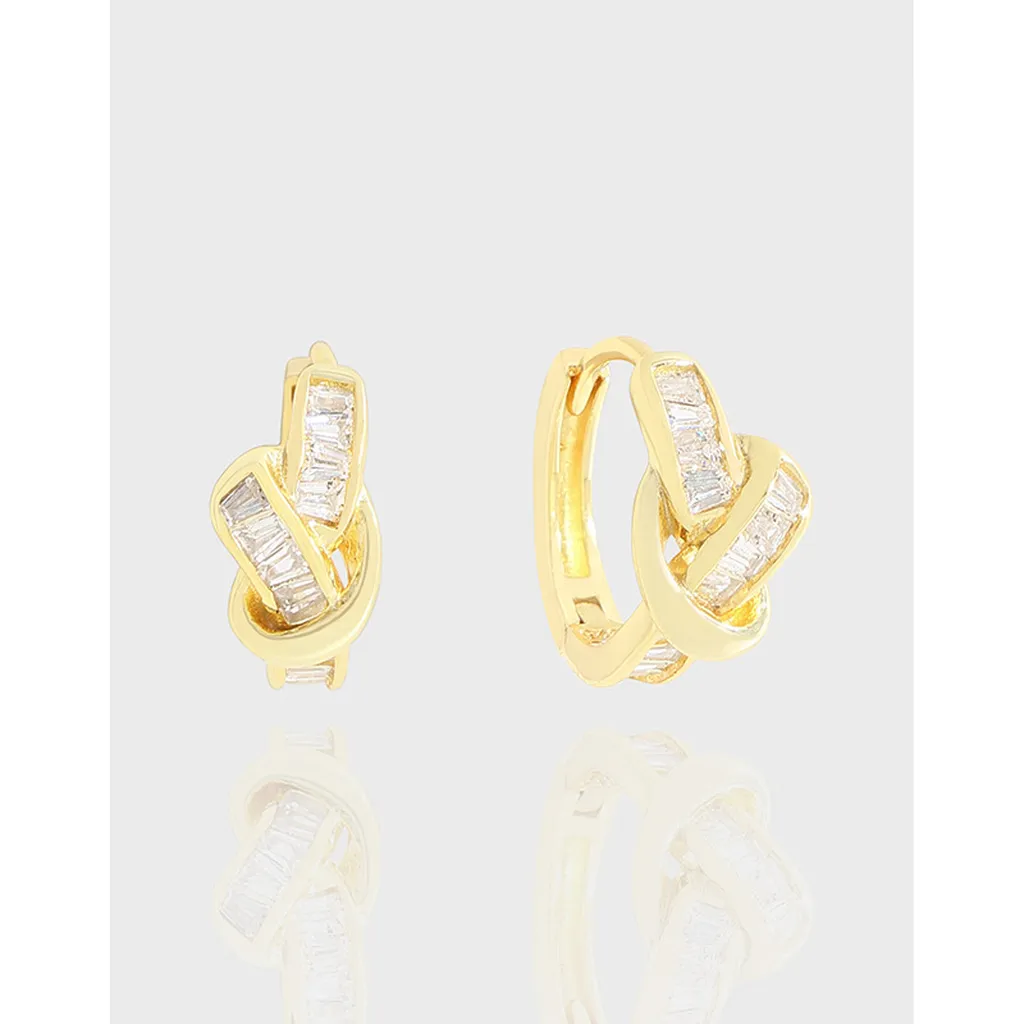 These enchanting Malisse huggie hoop earrings feature a captivating intertwined knot design, reminiscent of nature’s fluid artistry.
