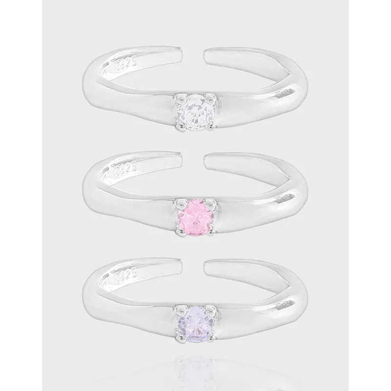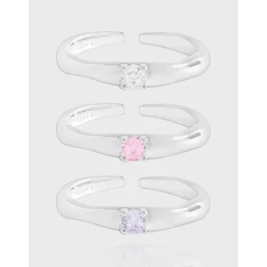 • Color: This trio of adjustable rings features polished sterling silver bands, each adorned with a vibrant, square-cut gemstone. The set includes stones in clear radiance, soft blushing pink, and an enchanting lilac hue, captuCandellabria Ring the diverse and ethereal shades of nature’s celestial moments.