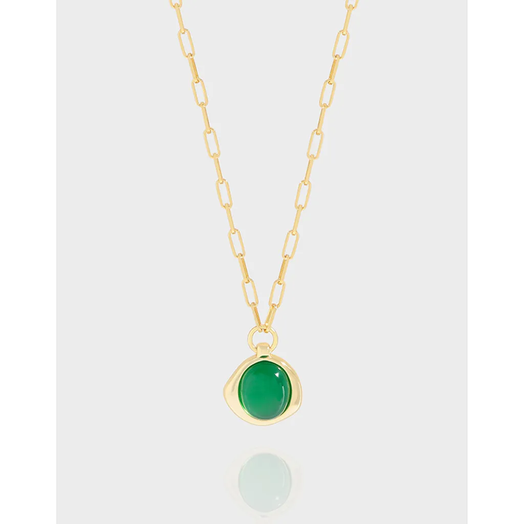 • Style: Merging contemporary elegance with organic design, this piece features a modern paperclip chain. The pendant showcases a unique, irregular, and fluid gold bezel, artfully embracing the smooth green cabochon. Its shape echoes natural formations, capturing Malisse’s dedication to “fluid shapes” and timeless allure.