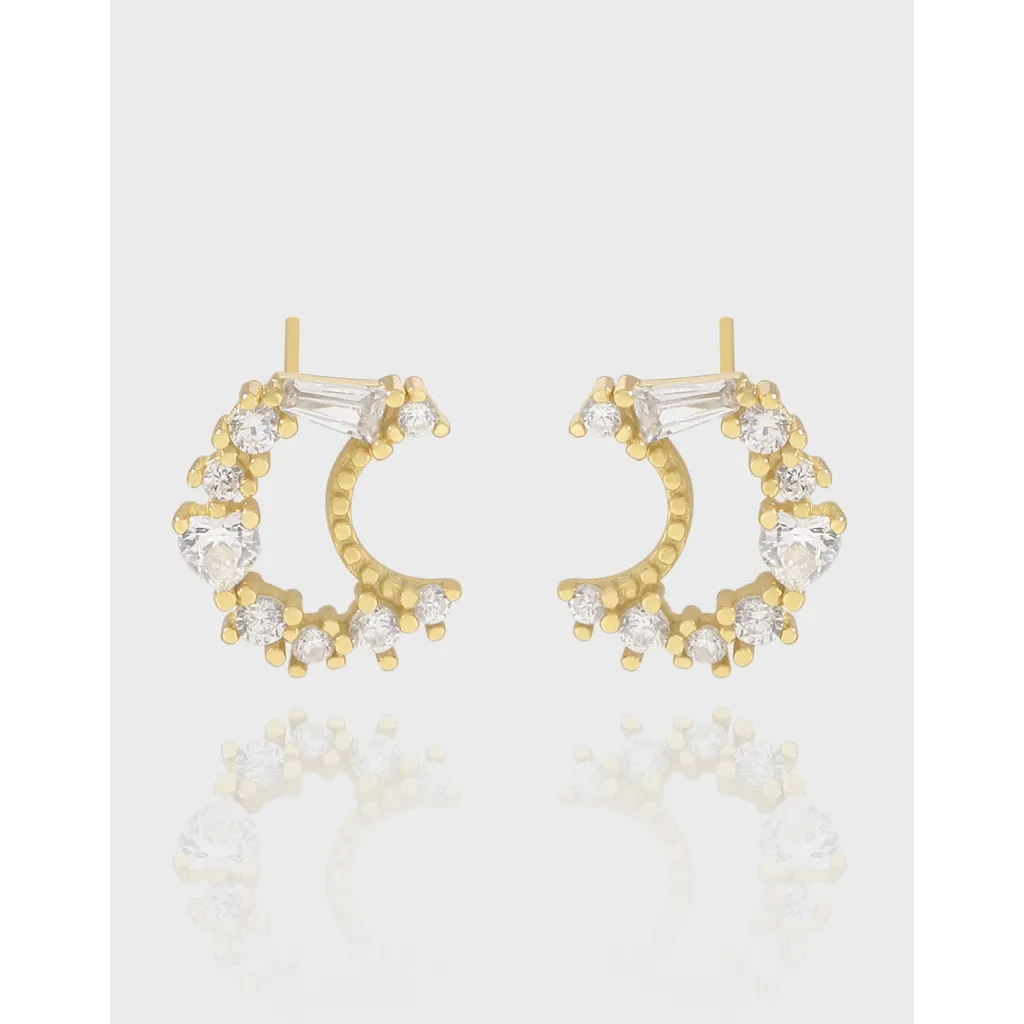 Malisse Celestial Crescent Earrings with Sparkling Gems