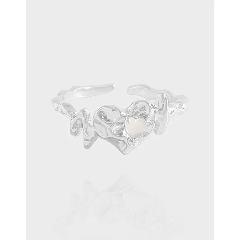 - Color: This piece features a brilliant, shimmeCelestina Ring silver tone, beautifully complemented by a luminous, milky white heart inlay that evokes a gentle, pearlescent glow.