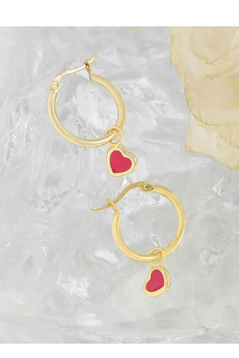 Malisse Gold Hoops with Vibrant Pink Hearts