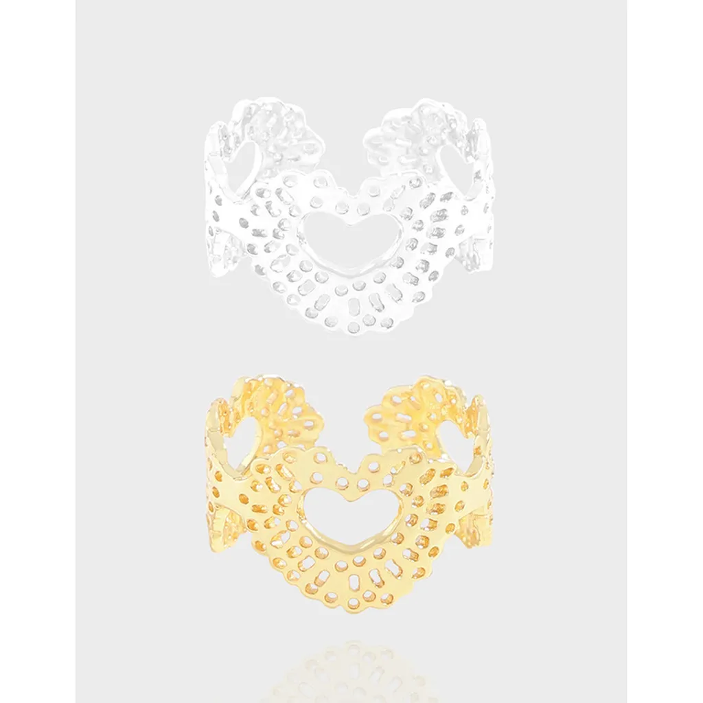 Enchanting Lacy Heart Cuff Ring
