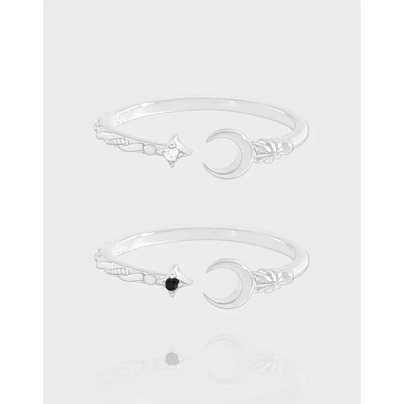 - Patterns & Textures: One end of the ring blossoms into a graceful crescent moon, while the other culminates in a radiant four-pointed star. The star is adorned with a delicate gemstone at its heart. The band’s sides are further enhanced with intricately carved patterns, evoking natural elements and lending a subtle, raw texture to its otherwise smooth and polished surface.