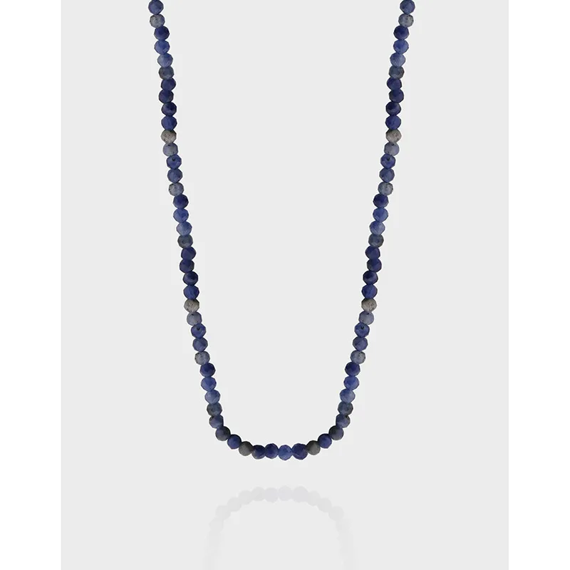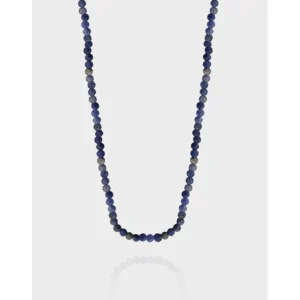 - Color: This Cosalia Necklace features a mesmerizing palette of deep, ethereal blues, echoing the vastness of the night sky and the serene depths of the ocean. Each bead showcases natural variations, creating a unique display of celestial hues that capture the ever-changing brilliance found in nature.