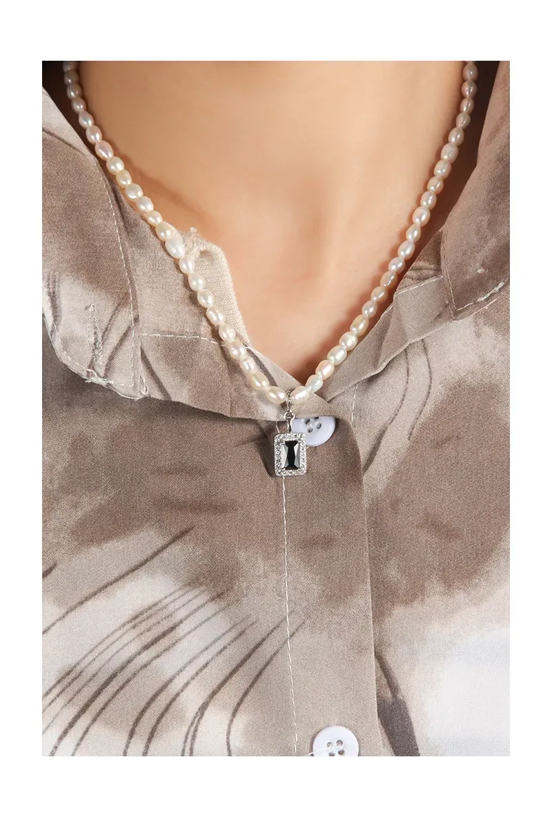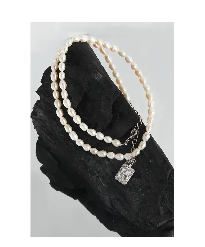 - Style: A sophisticated blend of classic elegance and modern organic charm. The naturally varied shapes of the pearls create a fluid, unique silhouette, while the rectangular, faceted crystal pendant adds a touch of refined brilliance inspired by celestial light.