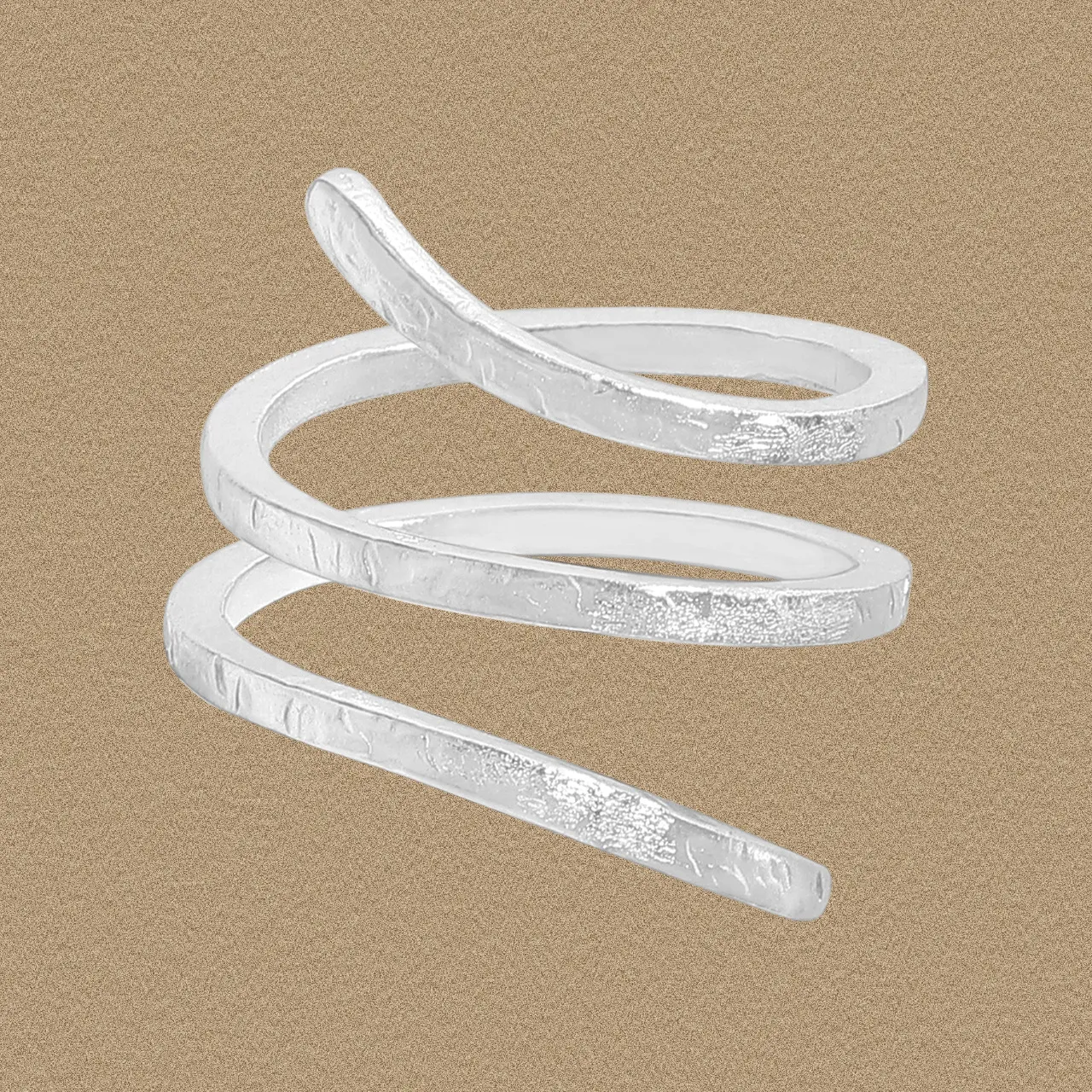 Embrace the celestial dance of nature with the Malisse Textured Silver Coil Ring. This captivating piece showcases a radiant silver color, reflecting light with an ethereal glow.