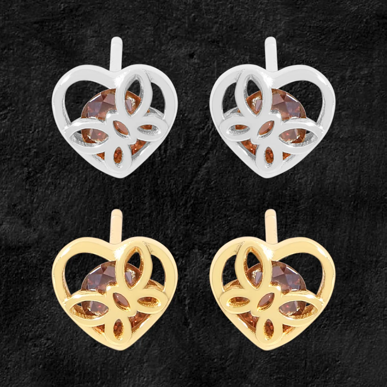 • Color: These captivating Cyrenna Earrings are offered in two stunning metal finishes: a radiant silver tone for a crisp, ethereal glow, and a rich, warm gold tone that exudes timeless elegance. Each pair features a central, deeply faceted gemstone in a mesmerizing reddish-brown hue, reminiscent of earthly treasures and celestial light.