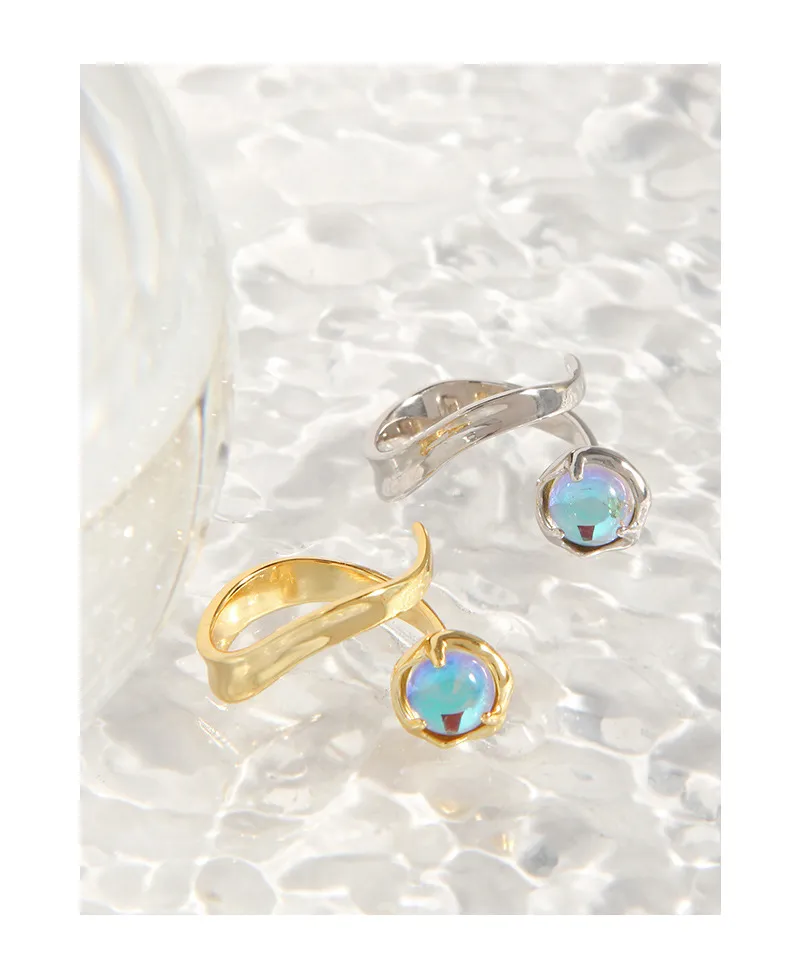 Embrace the celestial wonder with this exquisite open-ended ring, drawing inspiration from the ethereal glow of the aurora borealis. Its design captures the fluid and organic essence of nature, making it a truly unique statement piece.