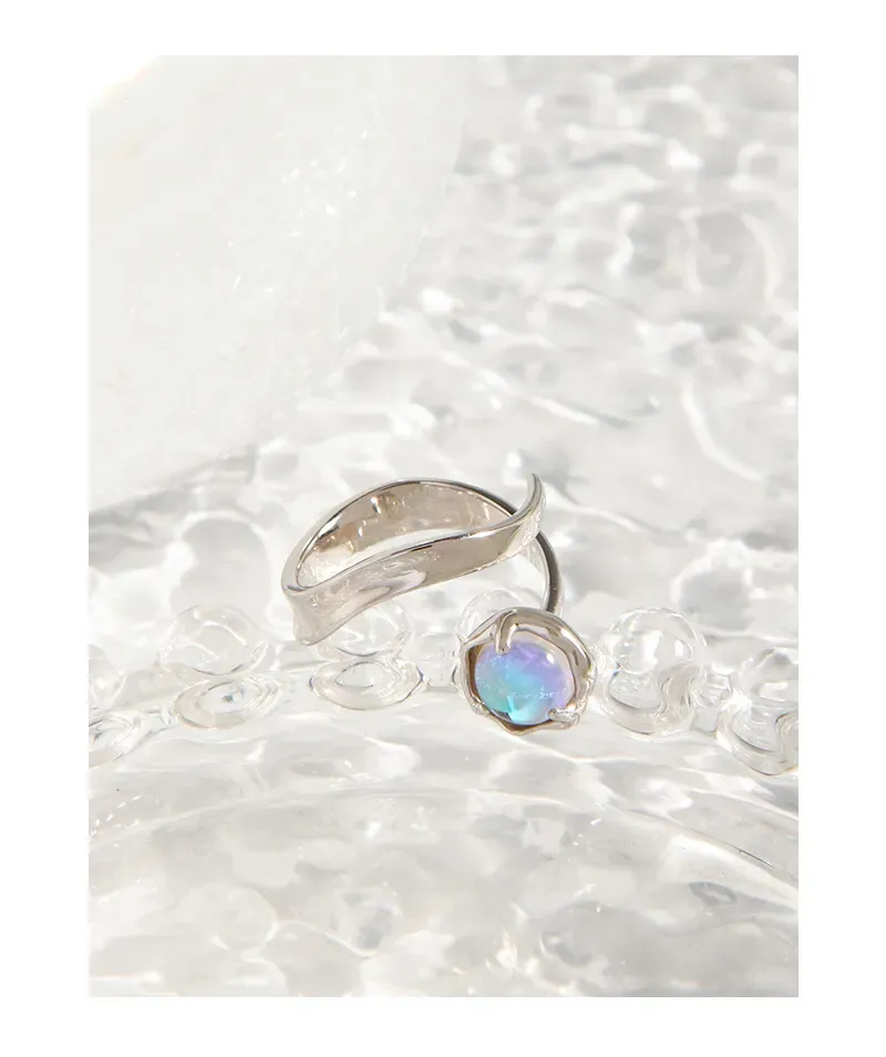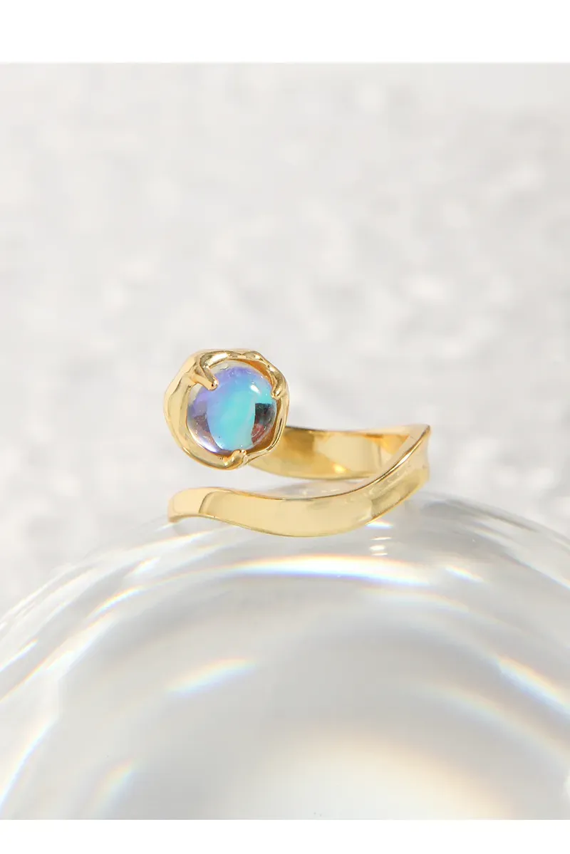 - Color: The Dalithra Ring features a radiant gold band that beautifully complements the iridescent central stone. This luminous gem shimmers with captivating hues of light blue, soft purple, and pristine white, reminiscent of distant starlight.