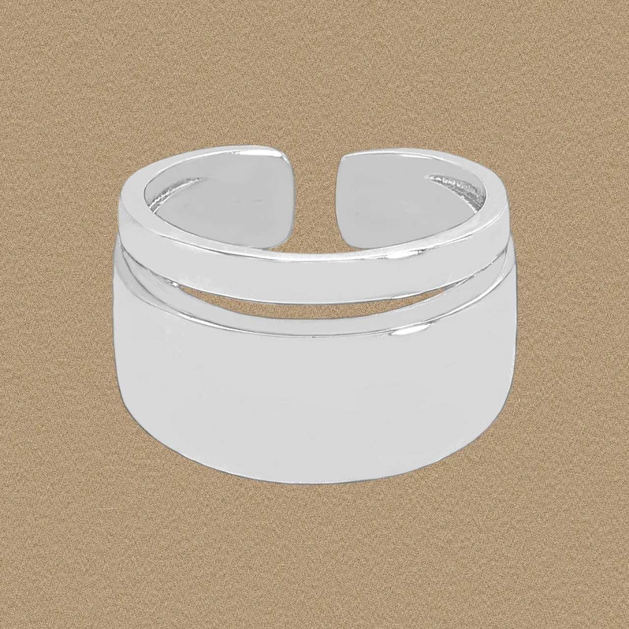 - Style: A contemporary and minimalist open-ended design, this ring boasts a wide, adjustable band. Its distinctive split creates two parallel, flowing forms, embodying a modern yet organic elegance.
