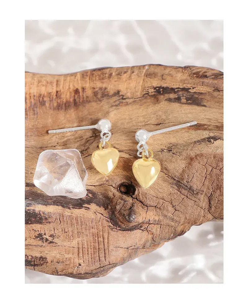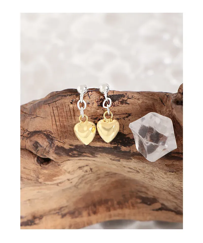 Malisse Two-Tone Puffed Heart Dangle Studs