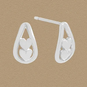 Crafted with a sleek, polished finish, the surface of these earrings exudes a smooth and refined texture. The defining pattern within each teardrop is an elegant openwork design showcasing two beautifully stacked hearts. This delicate motif creates a captivating interplay of light and shadow, capturing an enchanting moment of natural artistry and adding a romantic touch to the fluid shape.