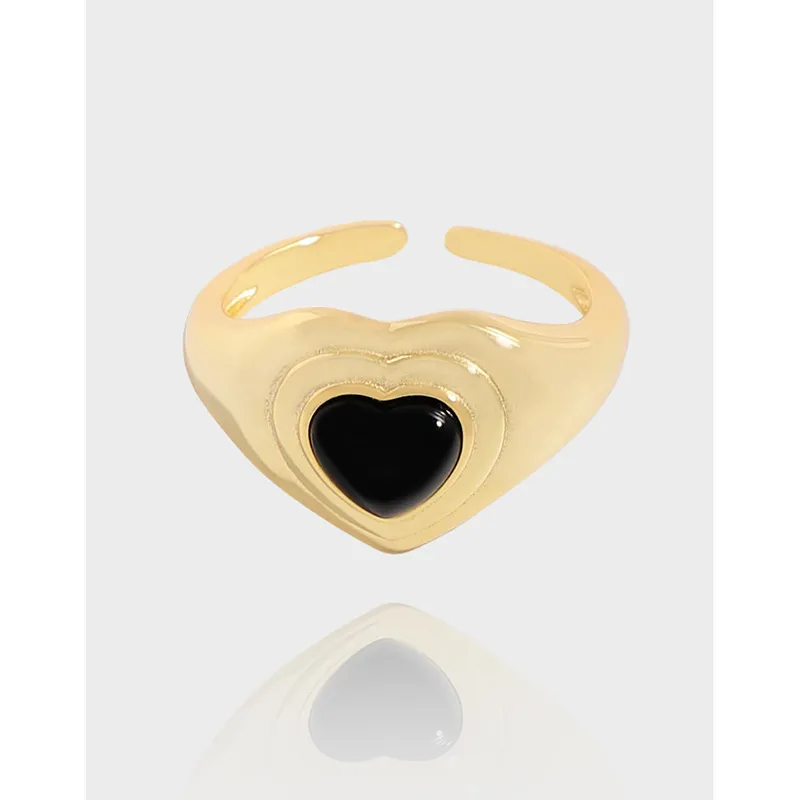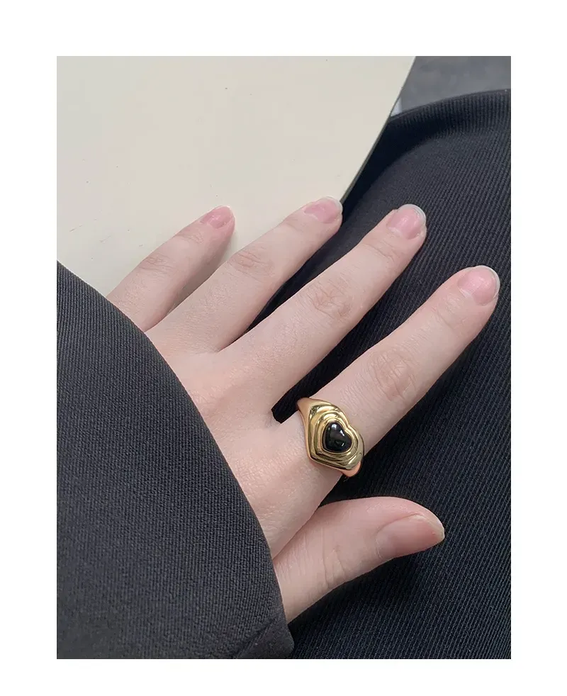 • Patterns & Textures: Features a beautifully polished, smooth golden surface that shimmers with every movement. The central heart is meticulously layered within a raised border, adding subtle dimension before giving way to the rich, smooth texture of the black inlay, echoing the depth of a precious gemstone.