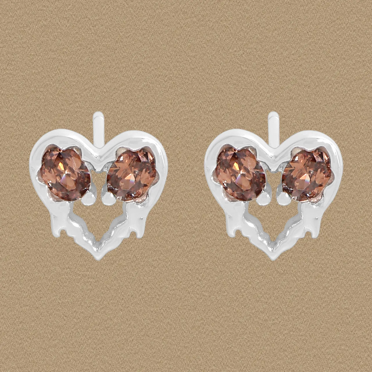 • Color: Each earring showcases two brilliantly faceted gemstones in a rich, warm brown hue, reminiscent of natural earth tones. These are beautifully complemented by the polished, bright silver-toned metal setting.