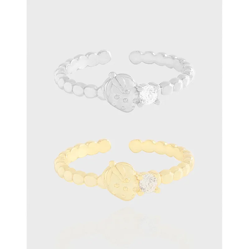 - Style: Designed as an open-ended adjustable ring, it offers a comfortable and versatile fit for any finger. Its whimsical style features a beautifully sculpted strawberry charm nestled beside a single, brilliant clear gemstone, evoking a sense of playful elegance and natural wonder.