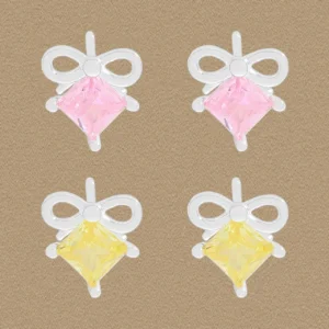 Discover the delicate charm of Malisse with these exquisite stud earrings, an ode to nature’s magic. Each earring features a beautifully sculpted, fluid silver-tone bow, reflecting the ethereal glow of celestial light. Adorning the center is a captivating square-cut gemstone, available in two celestial hues: