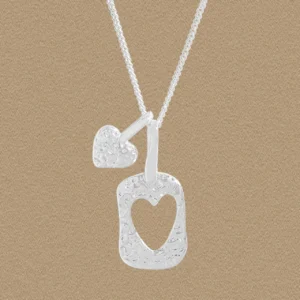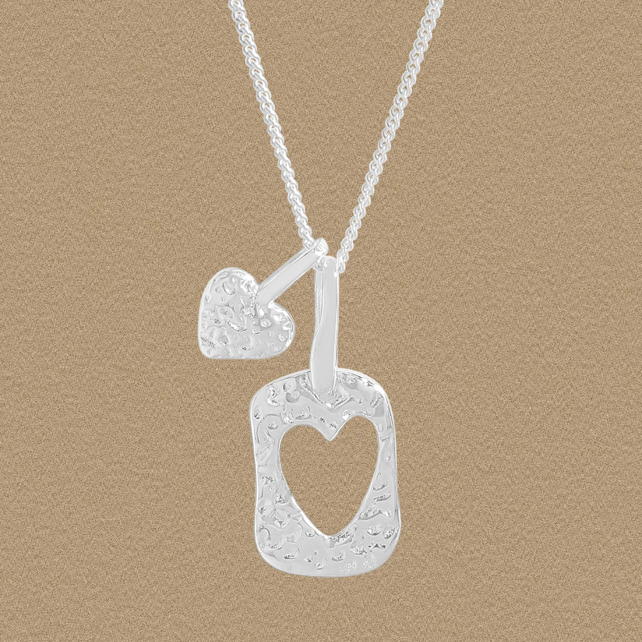 - Patterns & Textures: Each heart charm and the rectangular frame showcases a beautifully hand-hammered or organically textured finish. This imperfect beauty, reminiscent of natural elements, gives the silver a captivating, reflective surface that tells a story of mystery and timeless artistry.