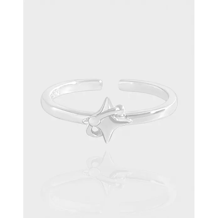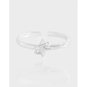 • Patterns or Textures: The entire ring boasts a uniformly smooth and highly polished surface, providing a reflective shine. There are no intricate patterns; rather, the texture is sleek and refined, emphasizing the simple beauty of the silver metal and star shape.