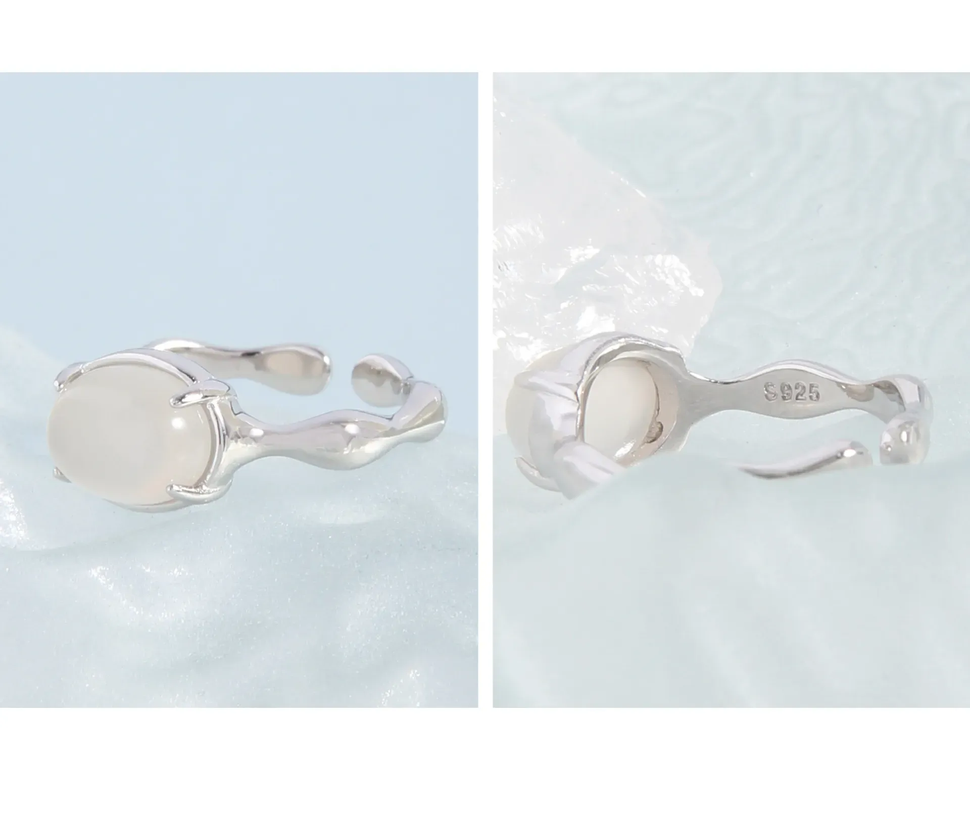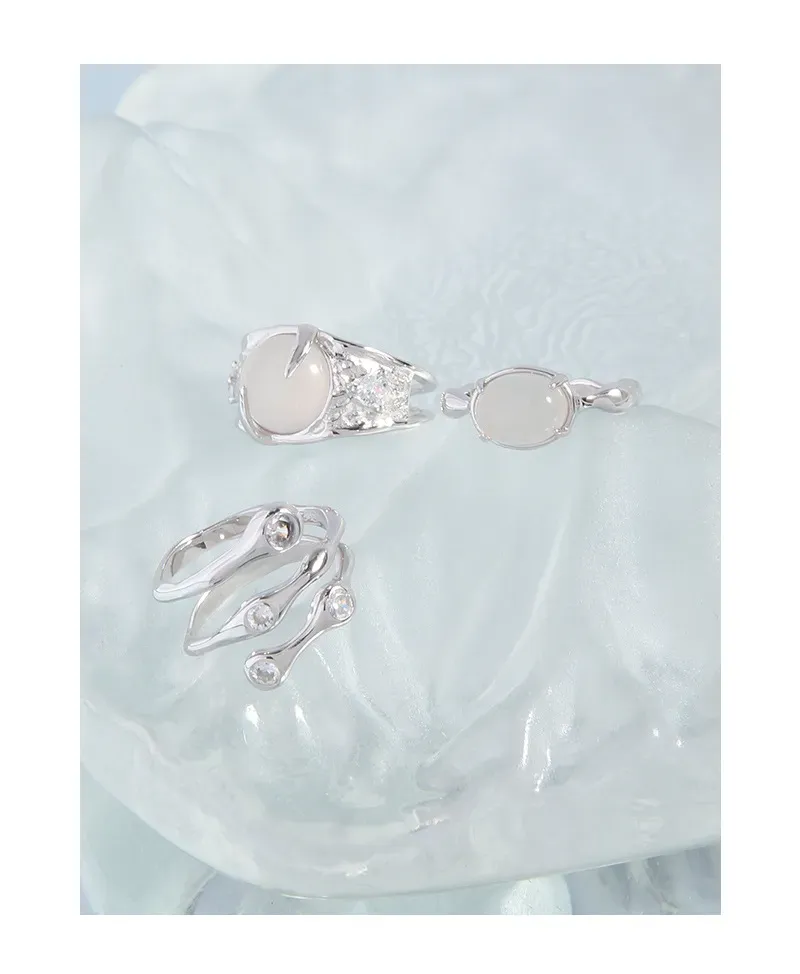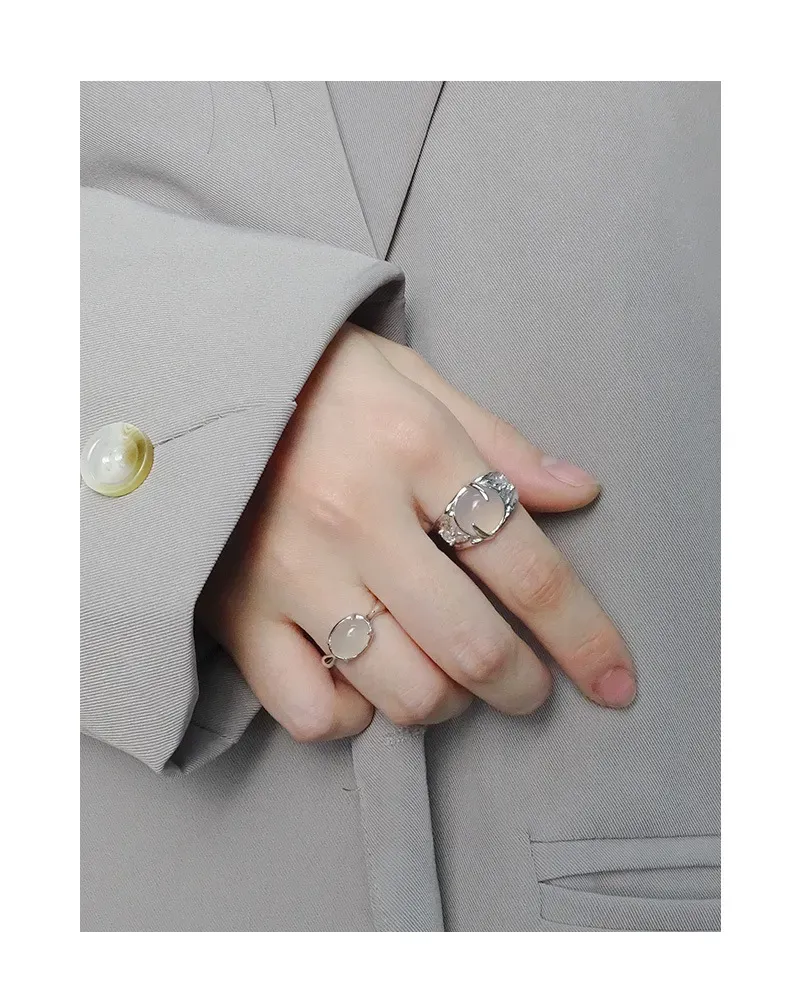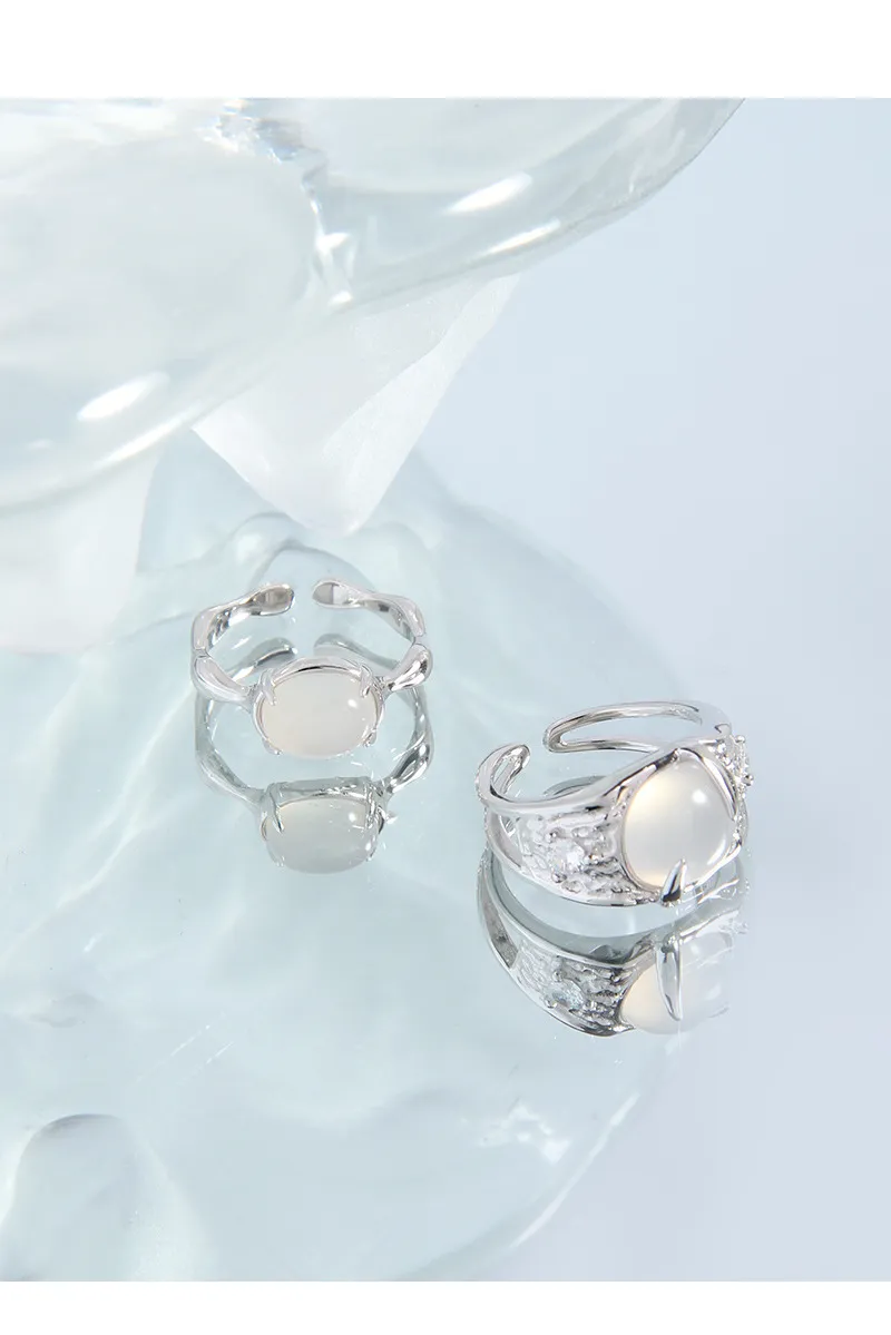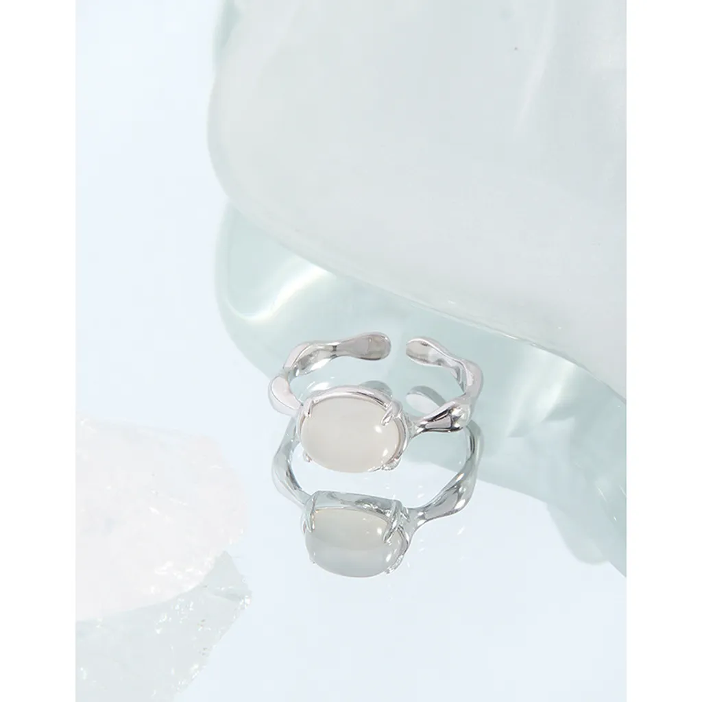 • Color: Crafted from polished silver-toned metal, its luminous sheen complements a captivating, milky white cabochon stone. The ethereal translucence of the stone evokes the soft glow of celestial bodies or the serene mist of dawn.