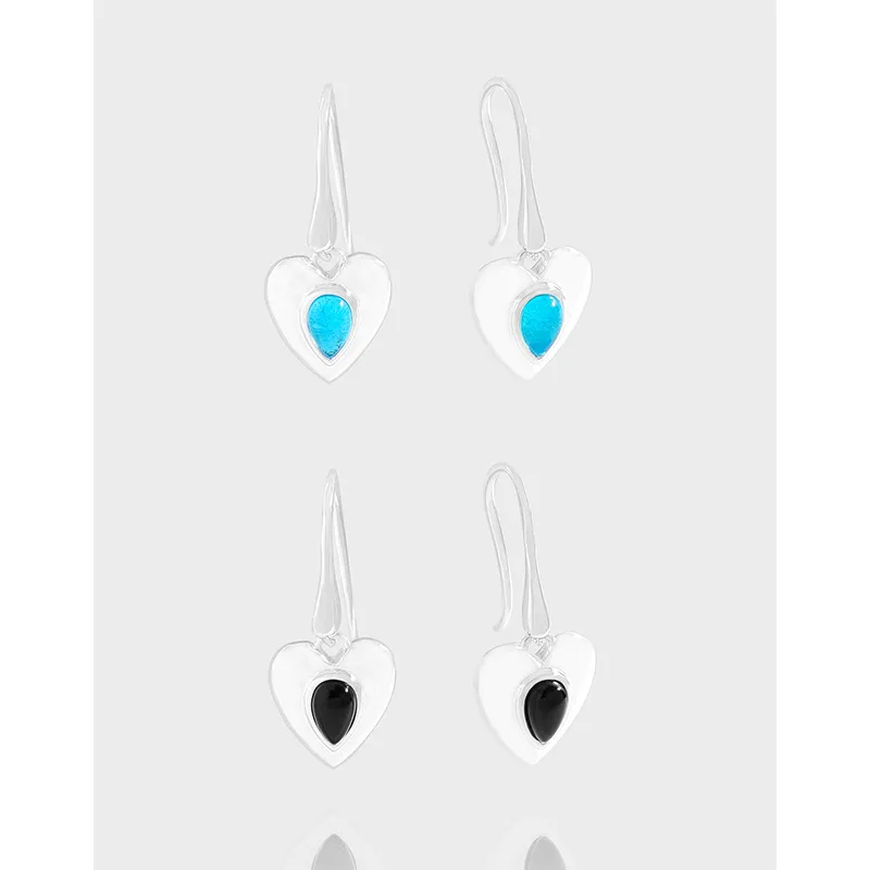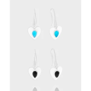 • Color: Each elegant pair features a polished silver-tone heart, beautifully encasing a teardrop-shaped gemstone. Available with a vibrant bright turquoise stone, evoking celestial hues and clear skies, or a rich deep black stone, reflecting the profound mystery of nature’s depths.