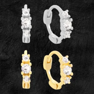 - Color: Available in both shimmering silver-toned and radiant gold-toned finishes, each piece features a trio of brilliant-cut, clear cubic zirconia stones that reflect light with captivating sparkle, reminiscent of the night sky’s celestial shimmer.