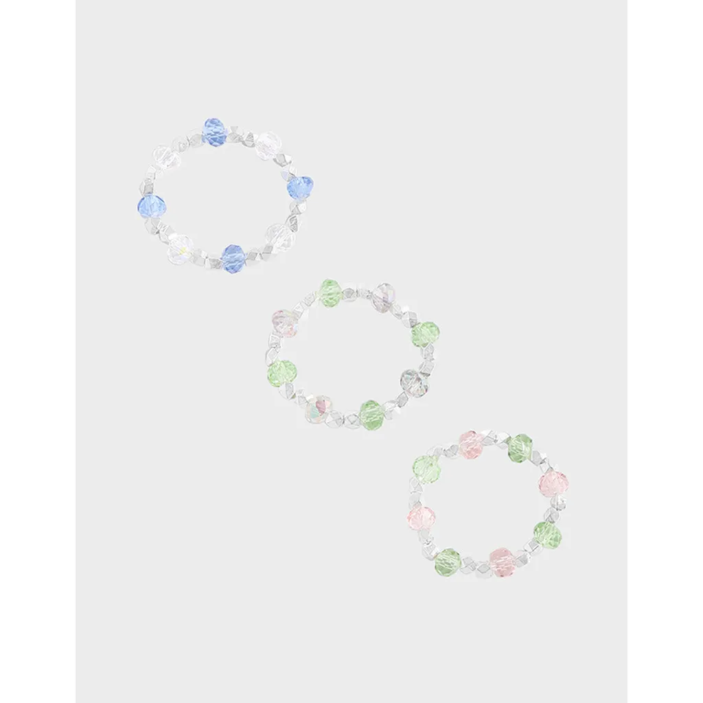 - Color: These rings feature a harmonious blend of clear, shimmering beads alternating with soft, celestial hues. Choose from serene pastel blue, verdant green, or delicate rose pink, all interspersed with transparent crystals that evoke the ethereal glow of the northern lights.
