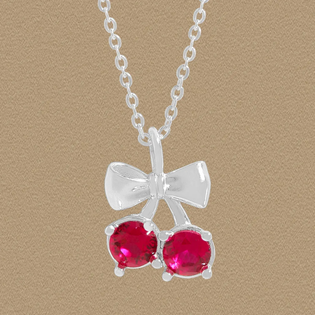 Charming Cherry Bow Necklace with Ruby Red Gems
