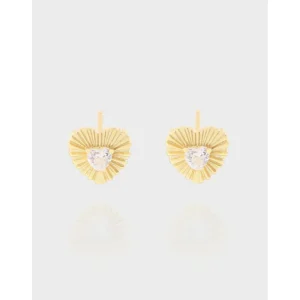 - Color: These captivating earrings gleam in a rich gold hue, beautifully contrasted by a brilliant, clear heart-shaped cubic zirconia stone at their core.