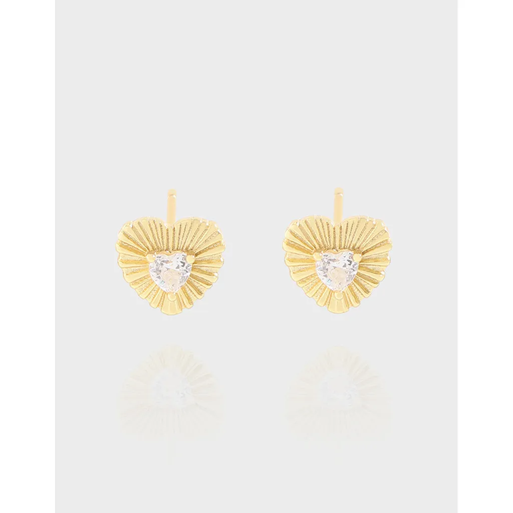 Celestial Gold Heart Studs with Radiant Zirconia