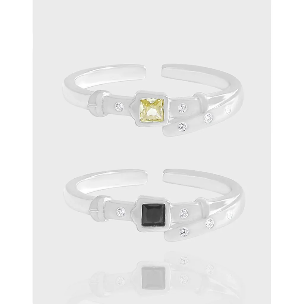 - Color: Crafted from lustrous silver-tone metal, this Elysiaella Ring is adorned with either a radiant yellow gemstone, reminiscent of sun-kissed dawn, or a profound black gemstone, evoking the mysterious depths of a starlit night. Complementing these central stones are smaller, brilliant clear accent gems, scattering light like distant stars.