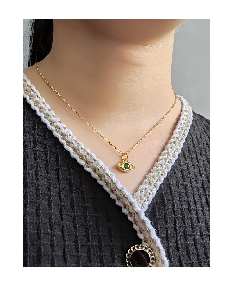 - Style: An elegant and mystical design, the pendant’s eye motif serves as a modern talisman, evoking a sense of timeless allure and protection. Its fluid, organic shape embodies the brand’s belief that jewelry should be “as fluid and organic as the world around.”