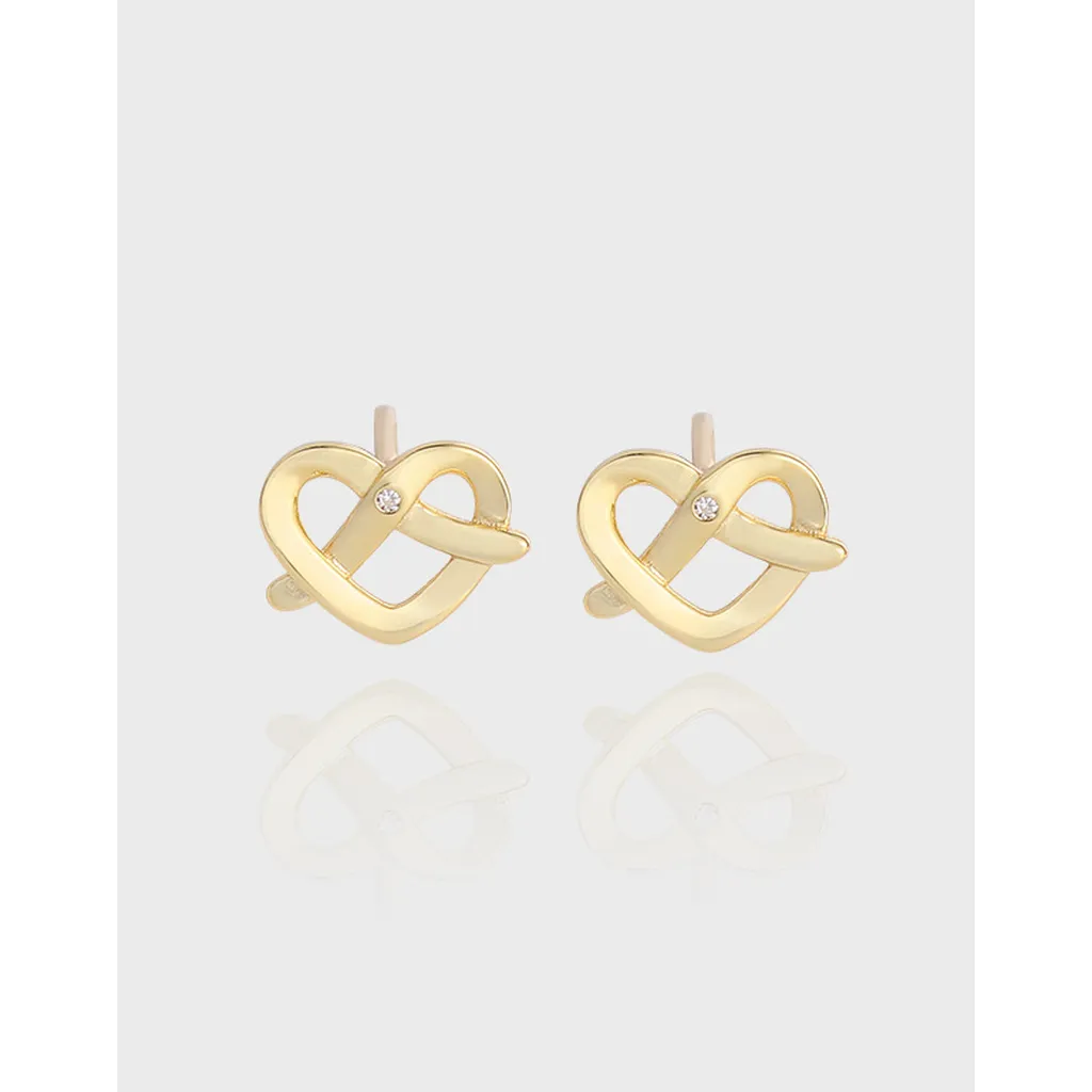 Golden Pretzel Heart Studs with Crystal
