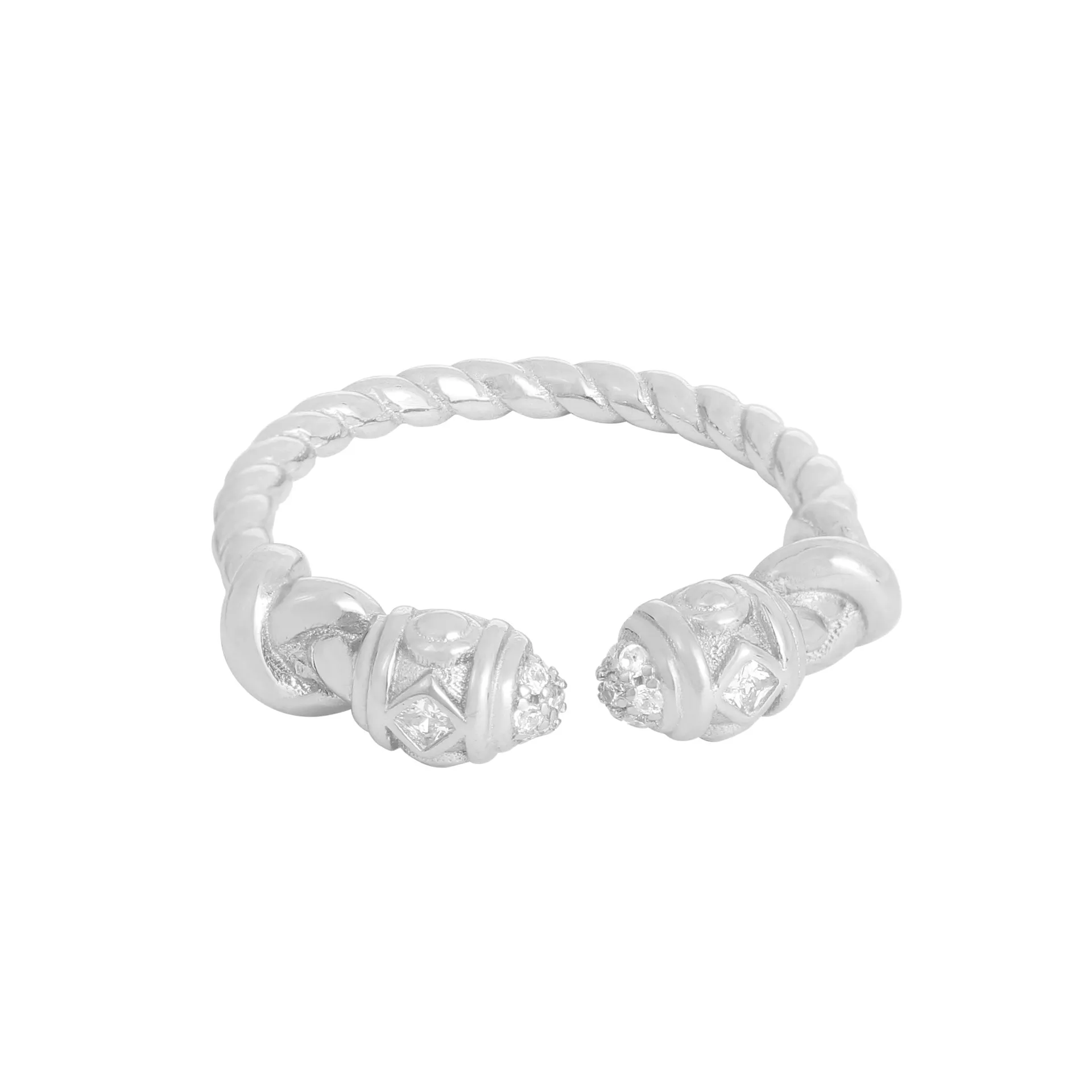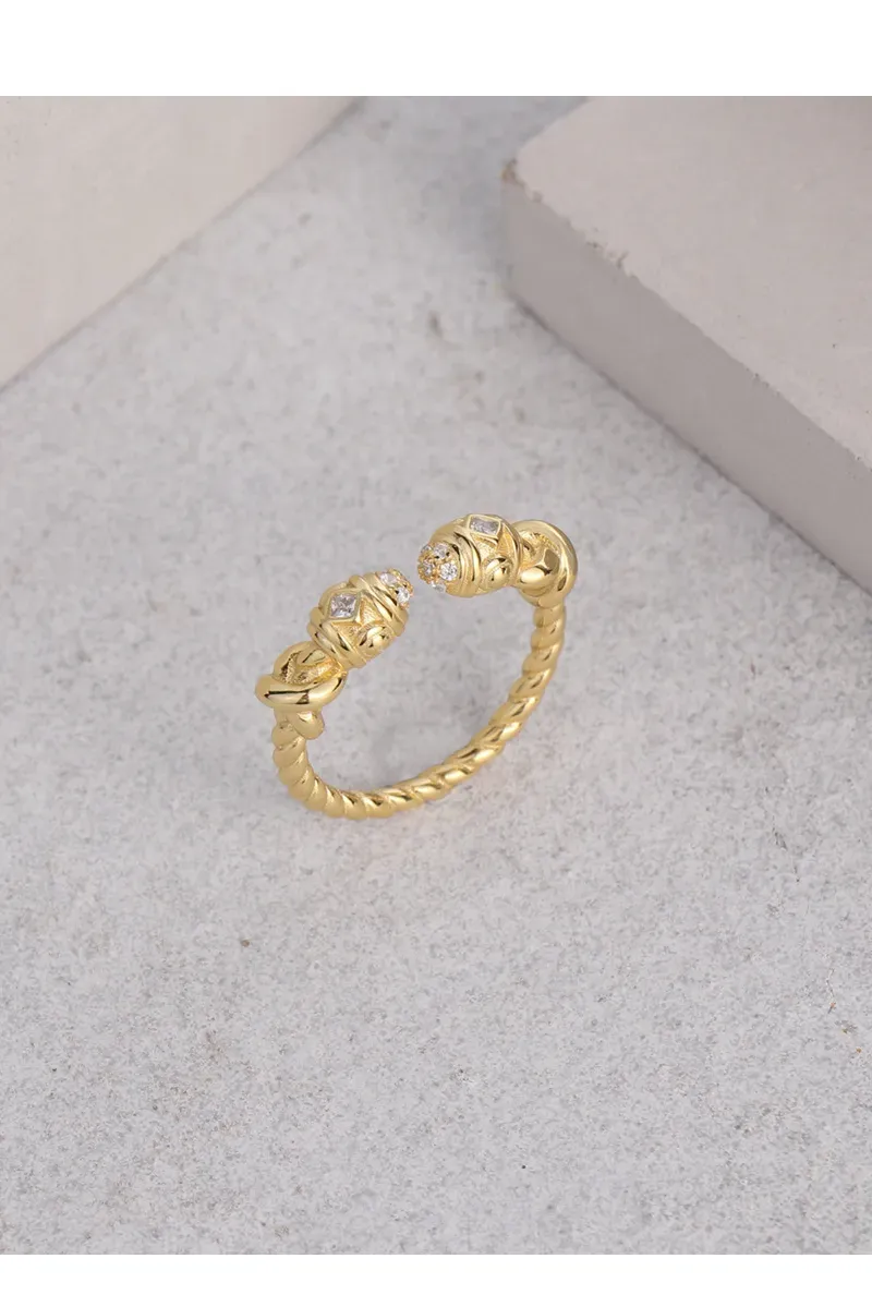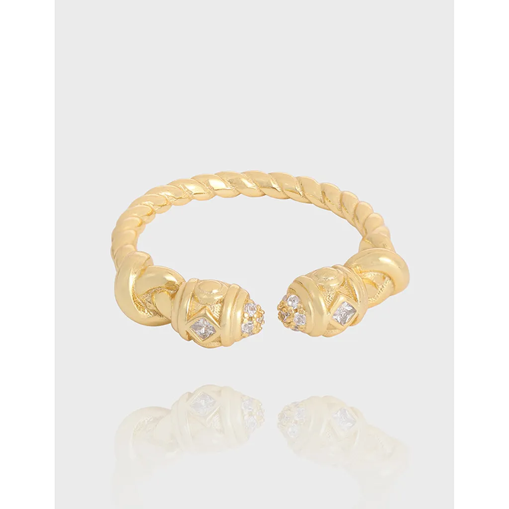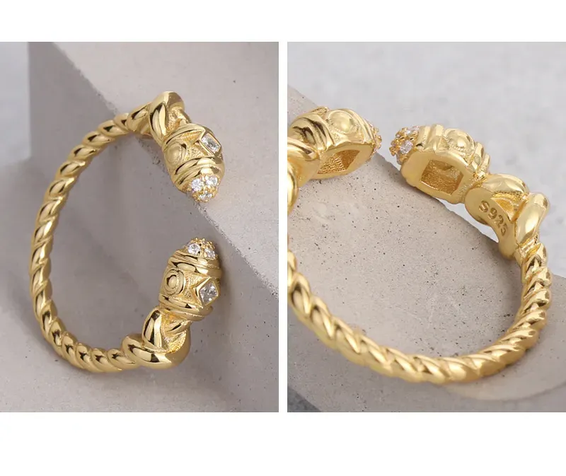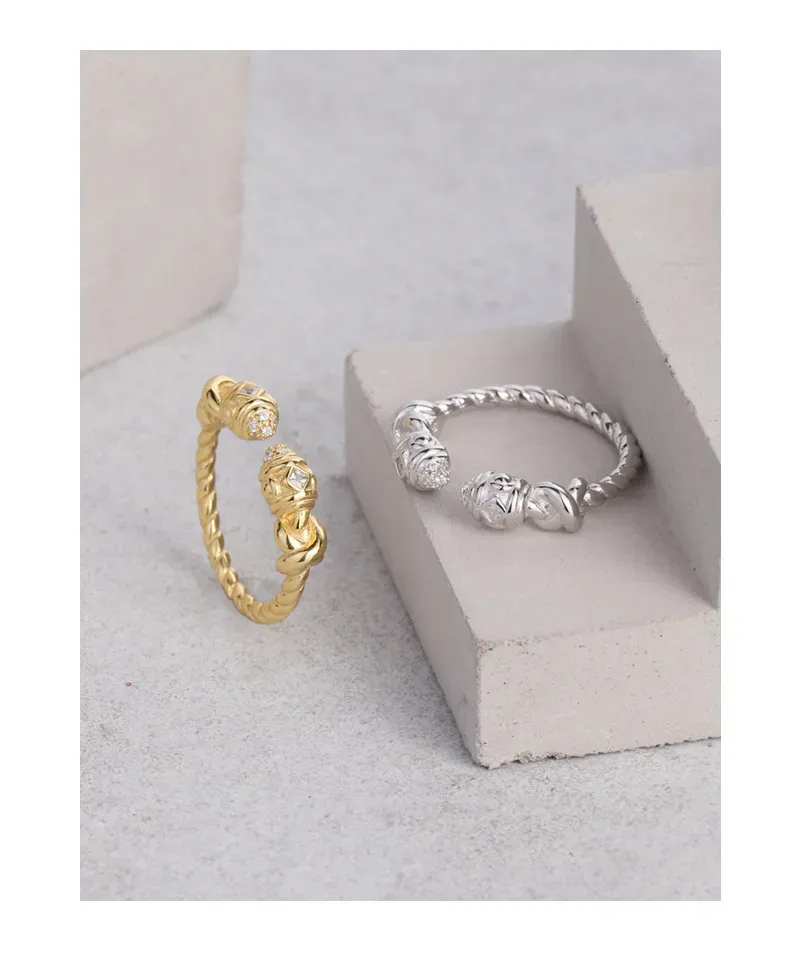 - Patterns & Textures: The band showcases a beautifully twisted, rope-like texture, reminiscent of intertwined natural elements. Each end culminates in an intricately crafted detail, adorned with both a central square-cut cubic zirconia and a scattering of smaller, brilliant round-cut cubic zirconia, creating a dazzling sparkle that evokes the magic of the night sky.