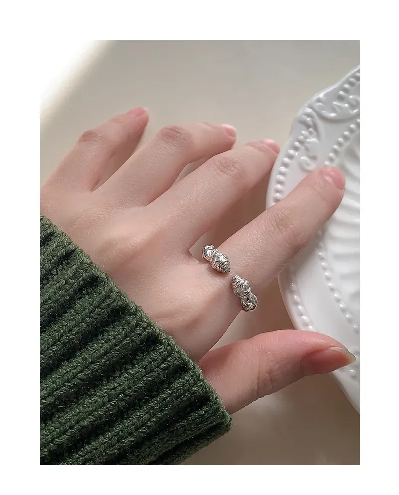 - Style: An elegant open-ended cuff ring, featuring a graceful, fluid silhouette. Its design embraces the organic flow and raw textures found in nature, allowing for flexible wear and a comfortable fit.