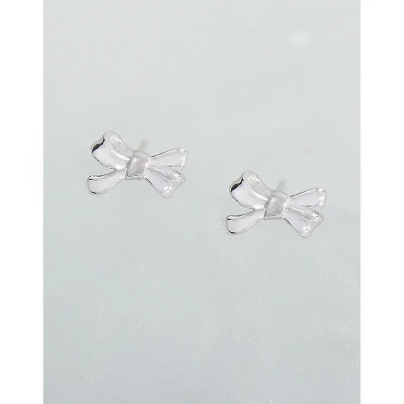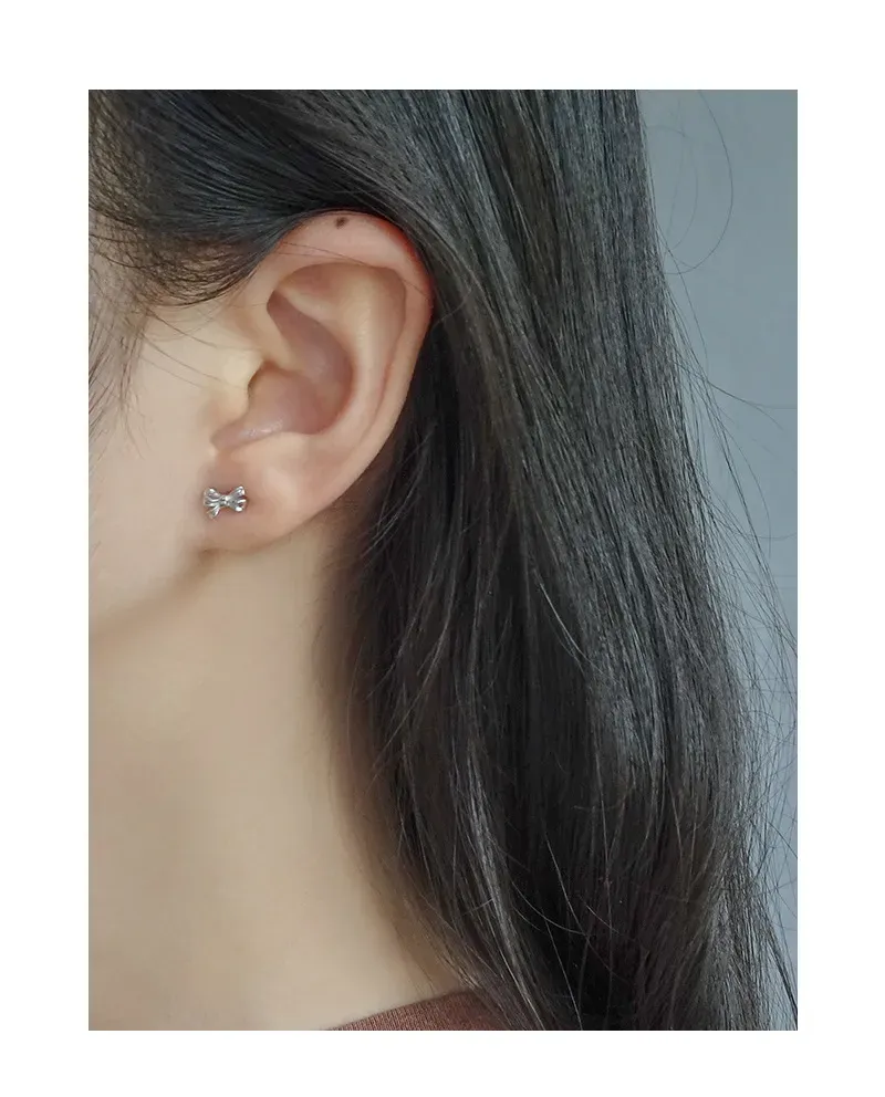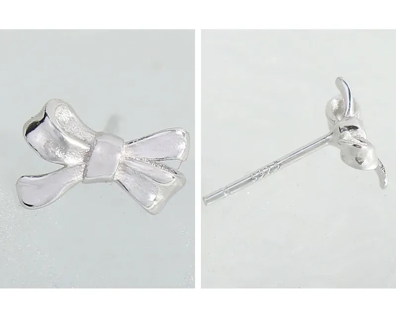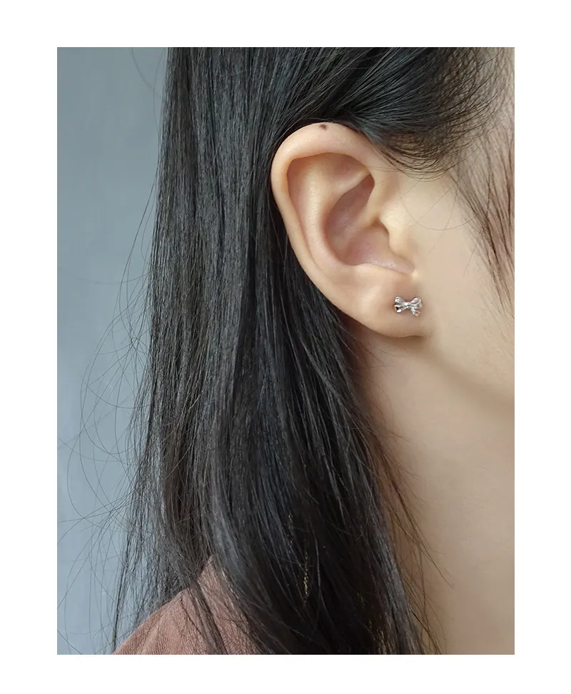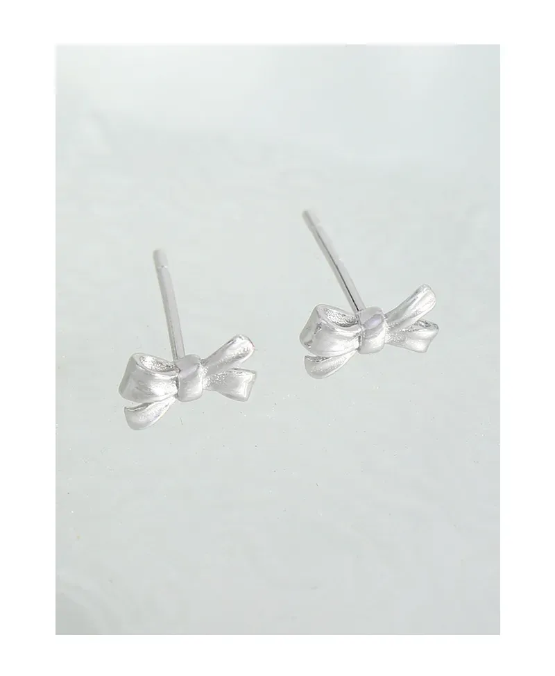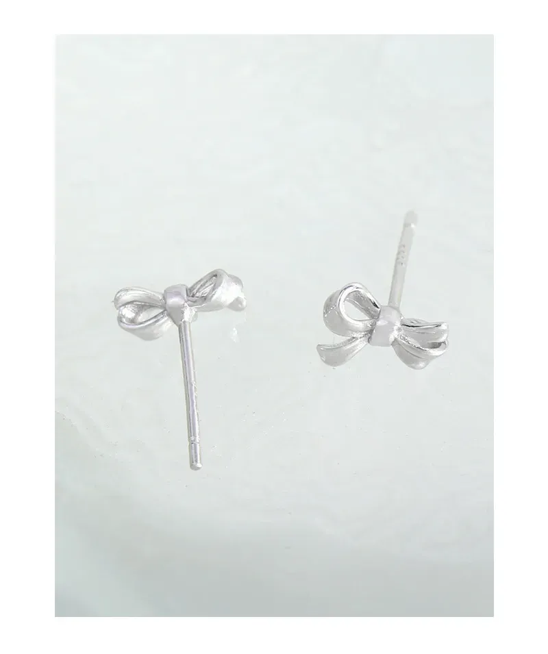• Textures: Each earring features a smooth, reflective metallic surface that beautifully captures and reflects light, highlighting the gentle folds and three-dimensional form of the bow.