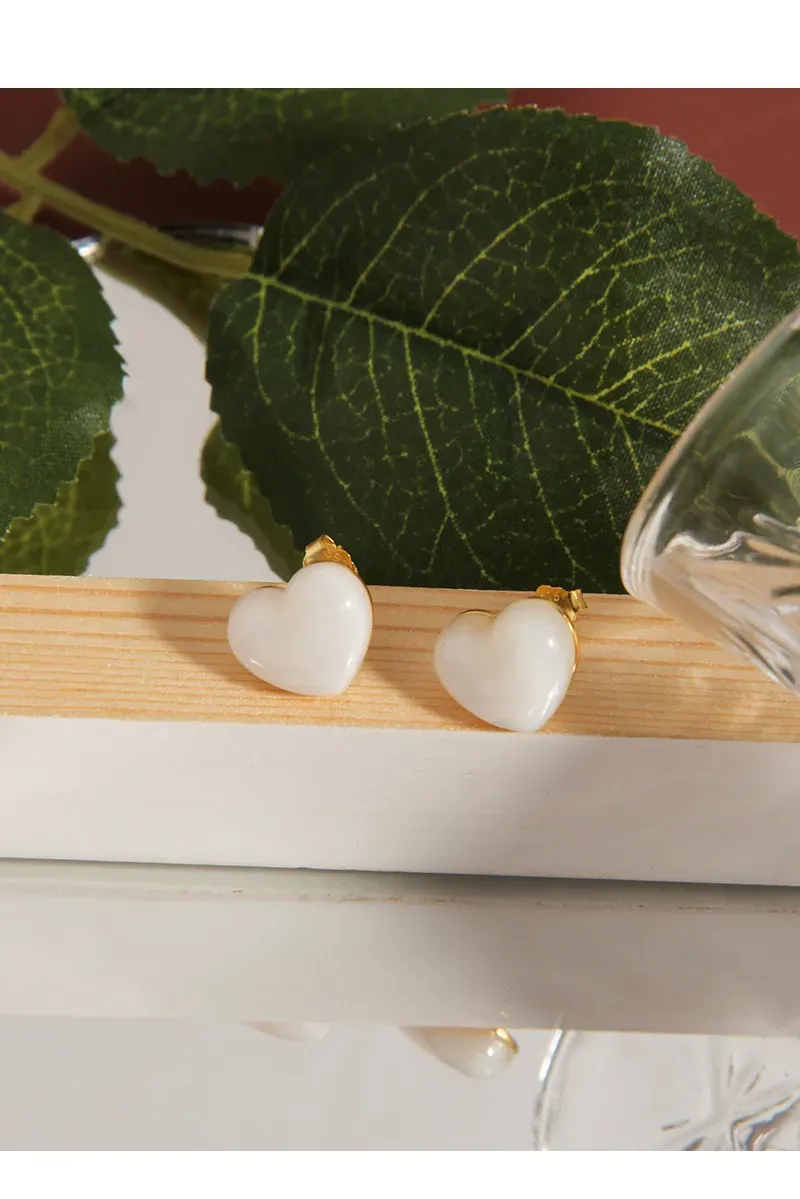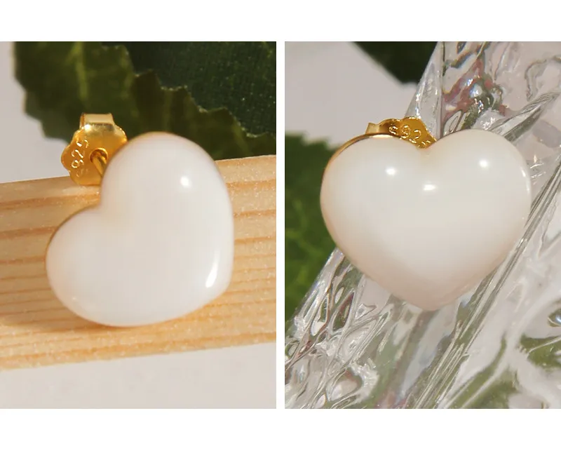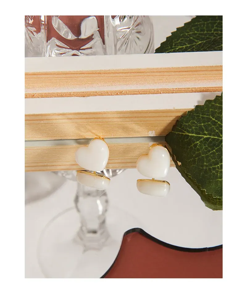 - Color: Each earring features a milky white, semi-translucent heart, radiating a soft, celestial glow. The subtle opalescence of the material is beautifully complemented by a delicate, radiant gold-toned setting.