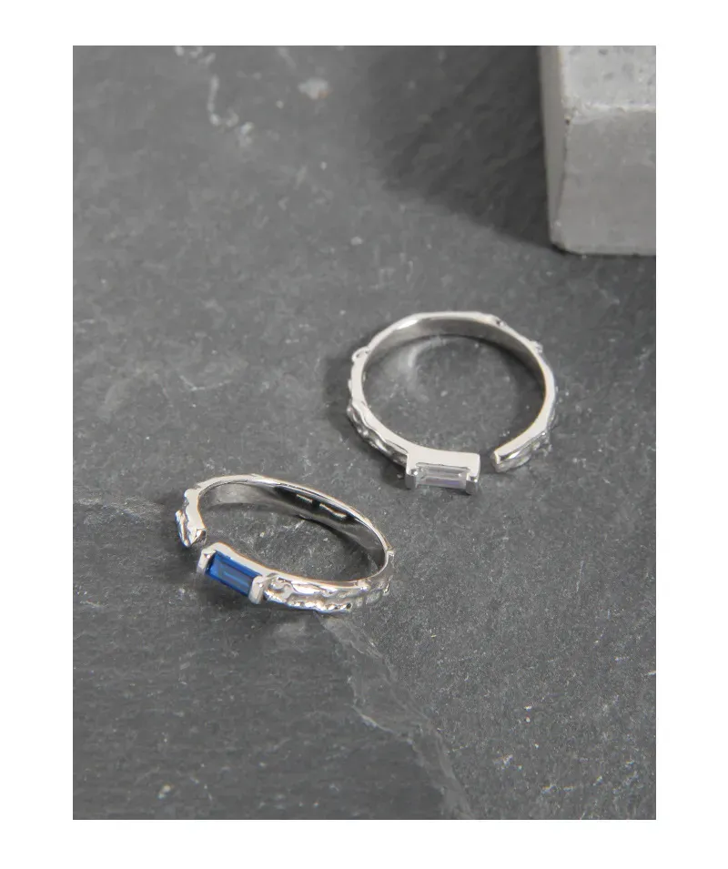This exquisite adjustable ring, imbued with the spirit of nature’s magic, features a luminous silver-toned band. Each piece is offered with a captivating rectangular gemstone: one in a vibrant, deep blue hue, evoking the mystique of celestial depths, and another in a brilliant, clear shade, reflecting the pure light of the cosmos.