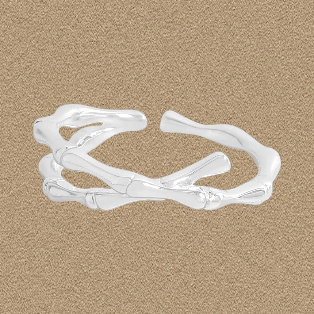 - Style: An adjustable, open-ended ring featuring a sculptural and abstract design, offering a modern yet timeless aesthetic that evokes natural, organic shapes.
