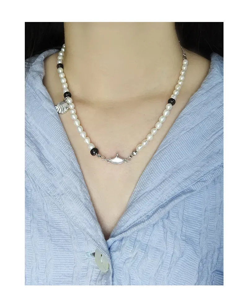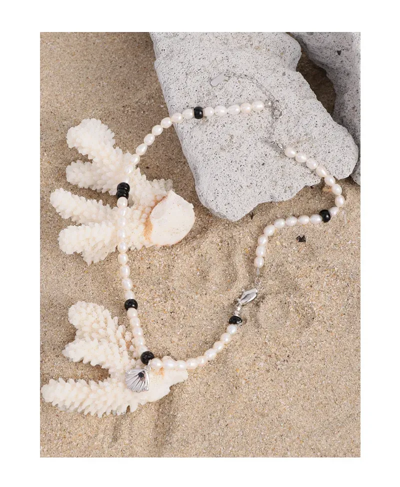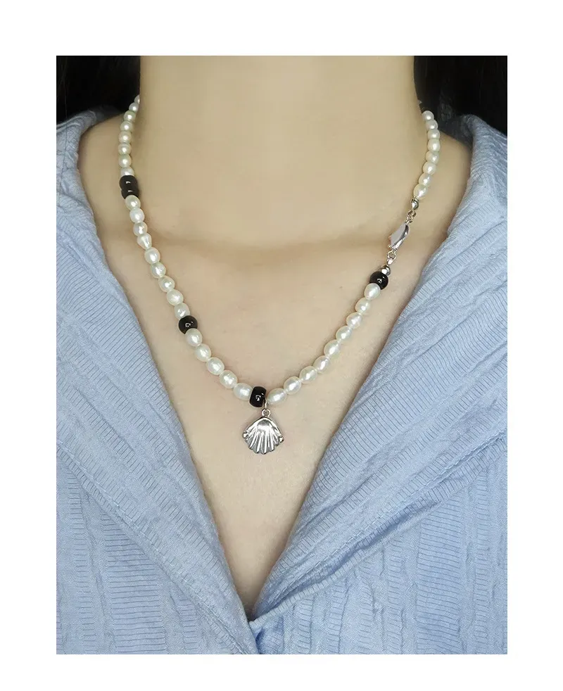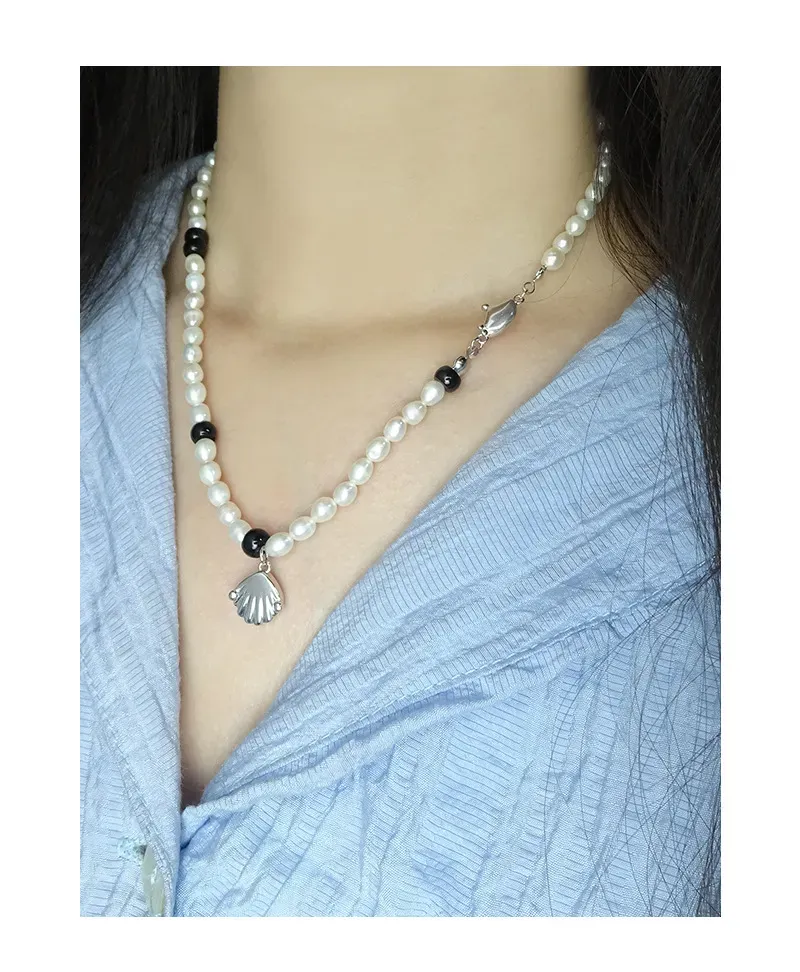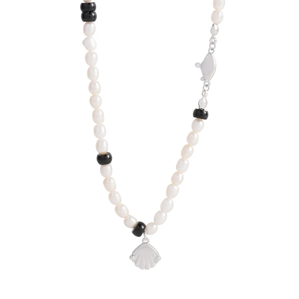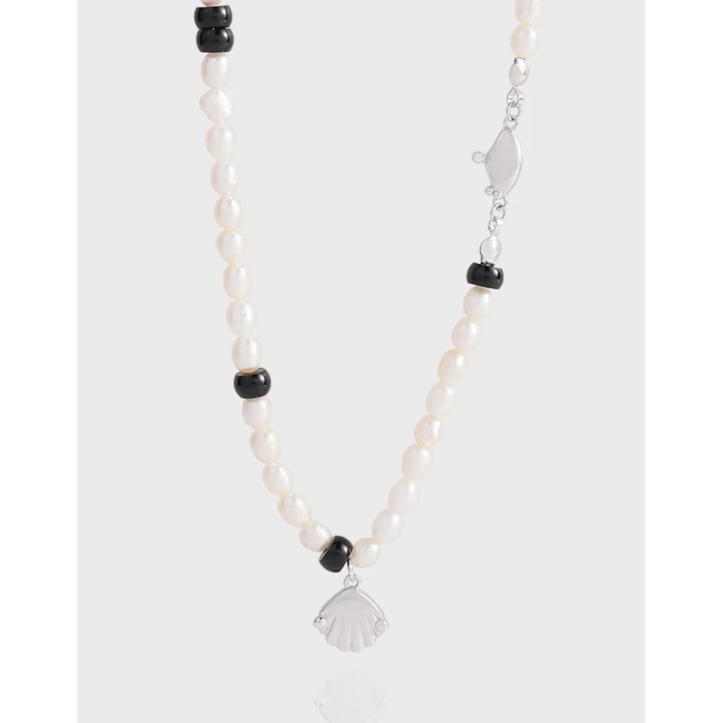 - Color: This Evalessia Necklace features lustrous white freshwater pearls, accented by sleek black beads, creating a striking monochrome contrast. The delicate shell pendant and clasp are crafted from radiant silver-toned metal.