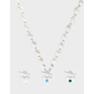 • Color: The necklace features luminous freshwater pearls in an ethereal white, complemented by radiant silver-toned metal beads and a toggle clasp. The heart-shaped pendant offers a choice of captivating celestial hues: a serene turquoise, a vibrant emerald green, or a delicate natural pearl at its core.