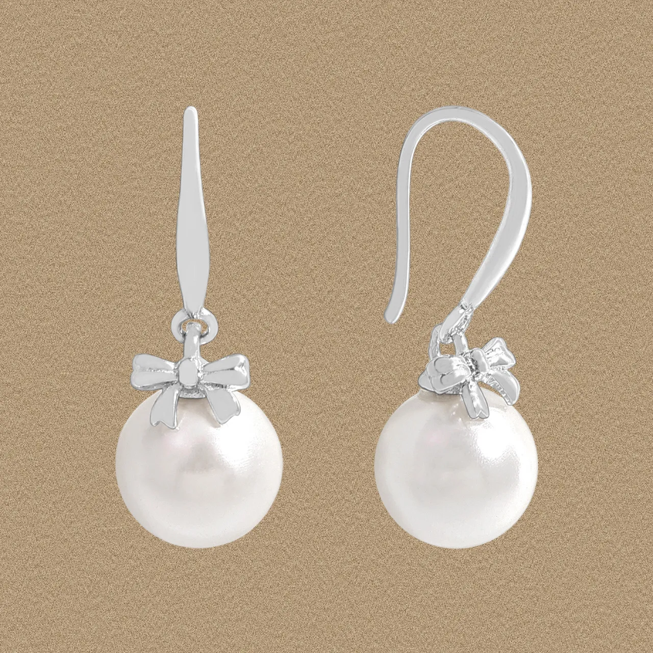 • Style: A classic drop earring design, enhanced by a charming and delicately sculpted silver-tone bow, adding a touch of graceful femininity to a sophisticated silhouette.