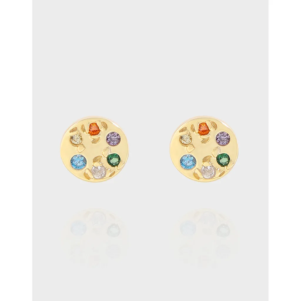 Embrace the enchanting magic of nature and the cosmos with these exquisite Malisse stud earrings. Crafted in a radiant gold tone, each circular earring is a miniature universe, adorned with a constellation of six vibrant, faceted gemstones.