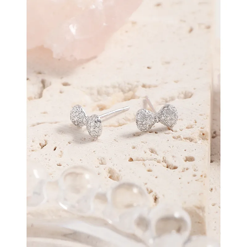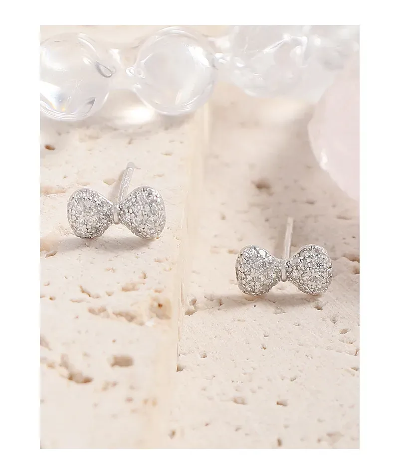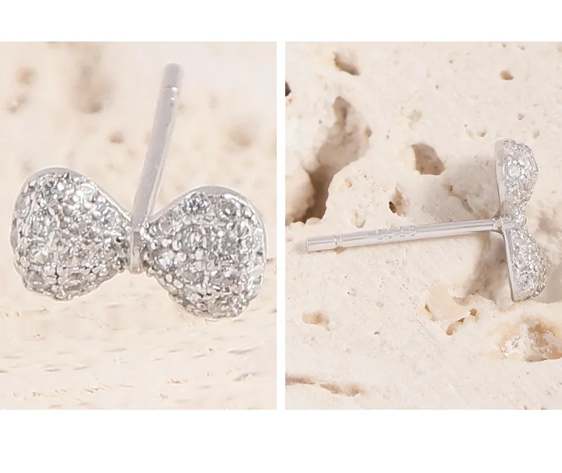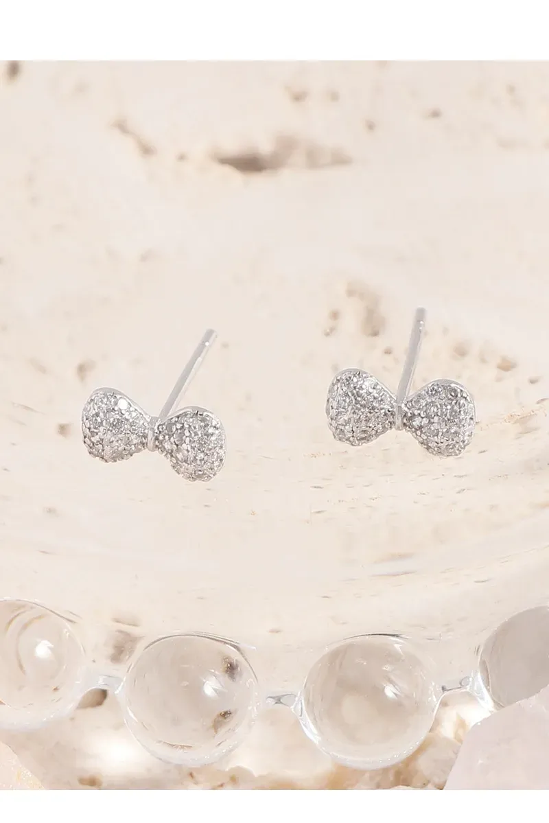 Embrace a touch of playful elegance with these enchanting bow stud earrings. Each delicate piece offers a radiant sparkle, perfect for adding a luminous charm to your look.
