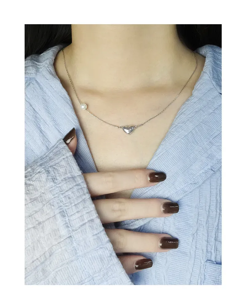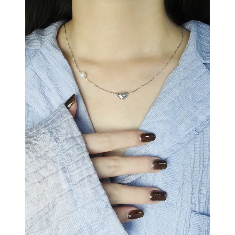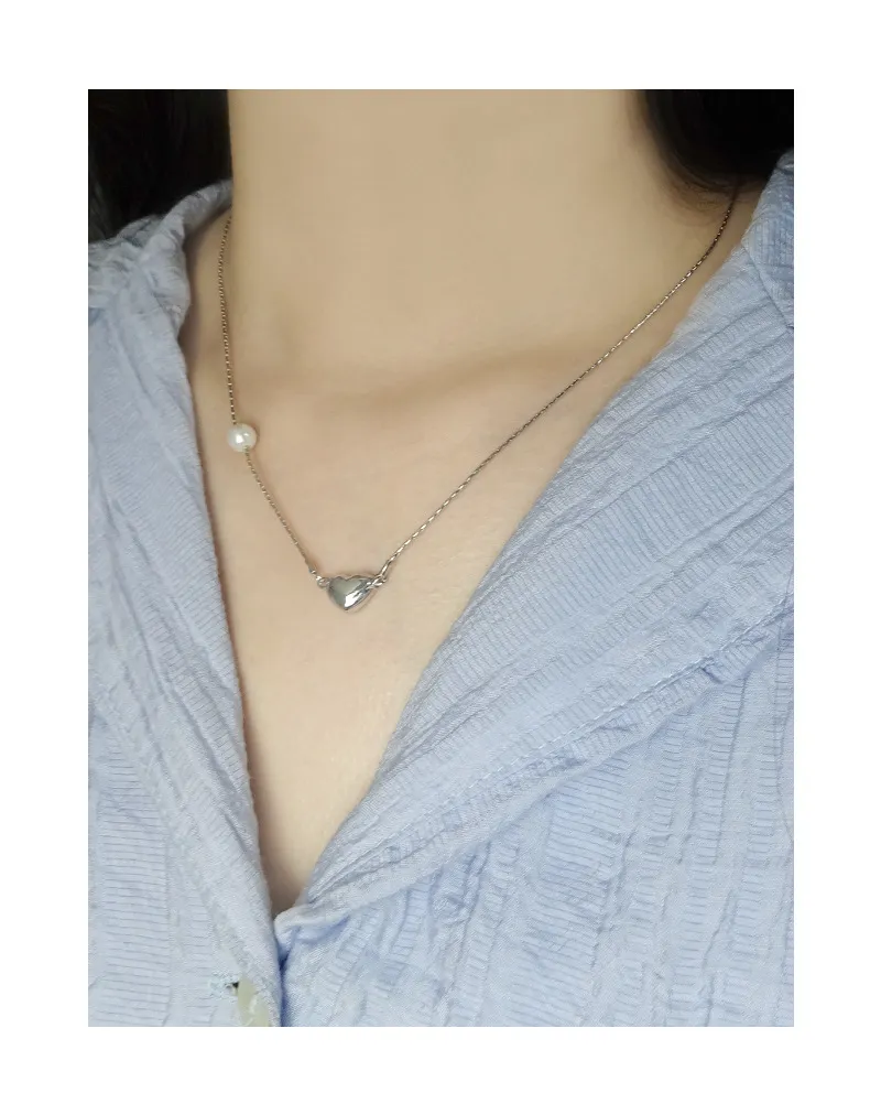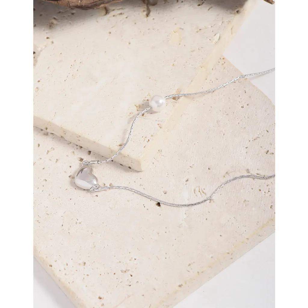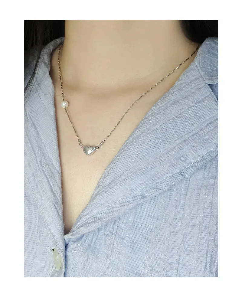- Patterns & Textures: The chain showcases a subtle, fine flat-link pattern, offering a smooth, reflective flow reminiscent of a gentle stream or the shimmer of moonlight on water. The heart pendant is polished to a high shine, presenting a smooth, rounded, and subtly voluminous surface. The accompanying pearl boasts a naturally smooth texture and a captivating, soft luster, adding an organic, ethereal glow to the piece.