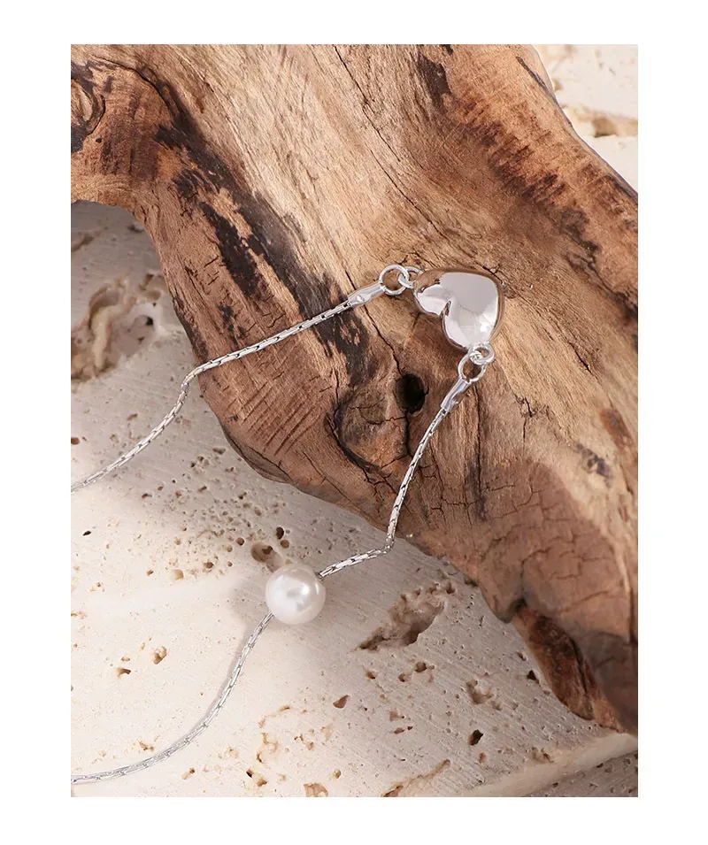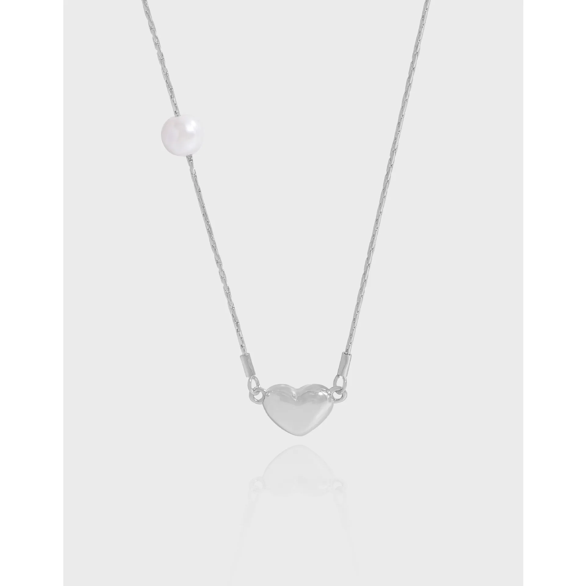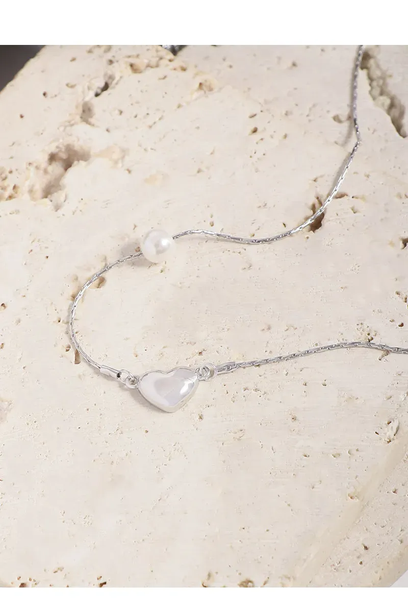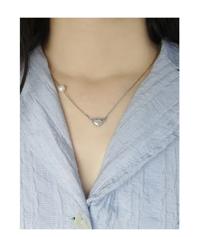 - Patterns & Textures: The chain showcases a subtle, fine flat-link pattern, offering a smooth, reflective flow reminiscent of a gentle stream or the shimmer of moonlight on water. The heart pendant is polished to a high shine, presenting a smooth, rounded, and subtly voluminous surface. The accompanying pearl boasts a naturally smooth texture and a captivating, soft luster, adding an organic, ethereal glow to the piece.