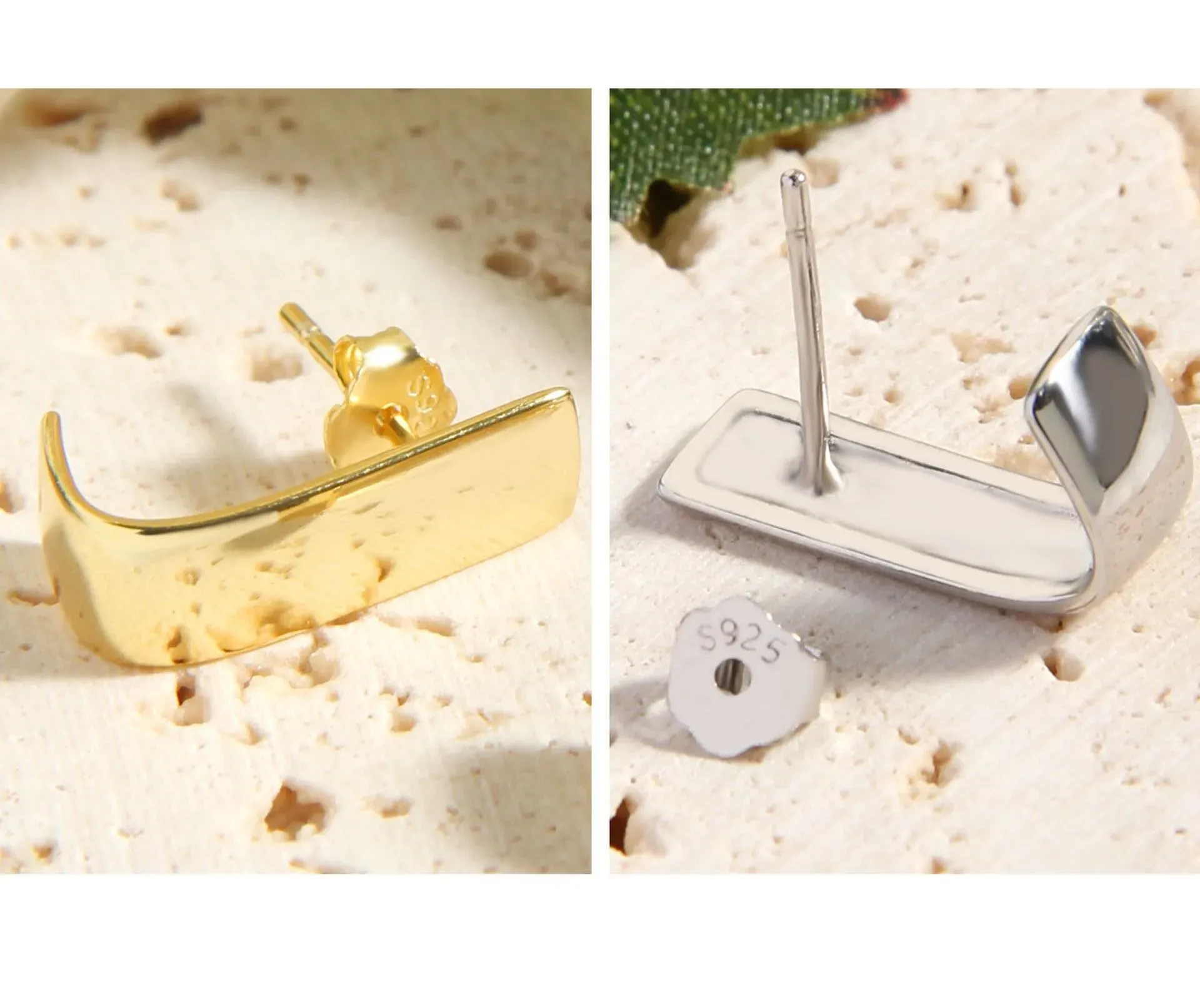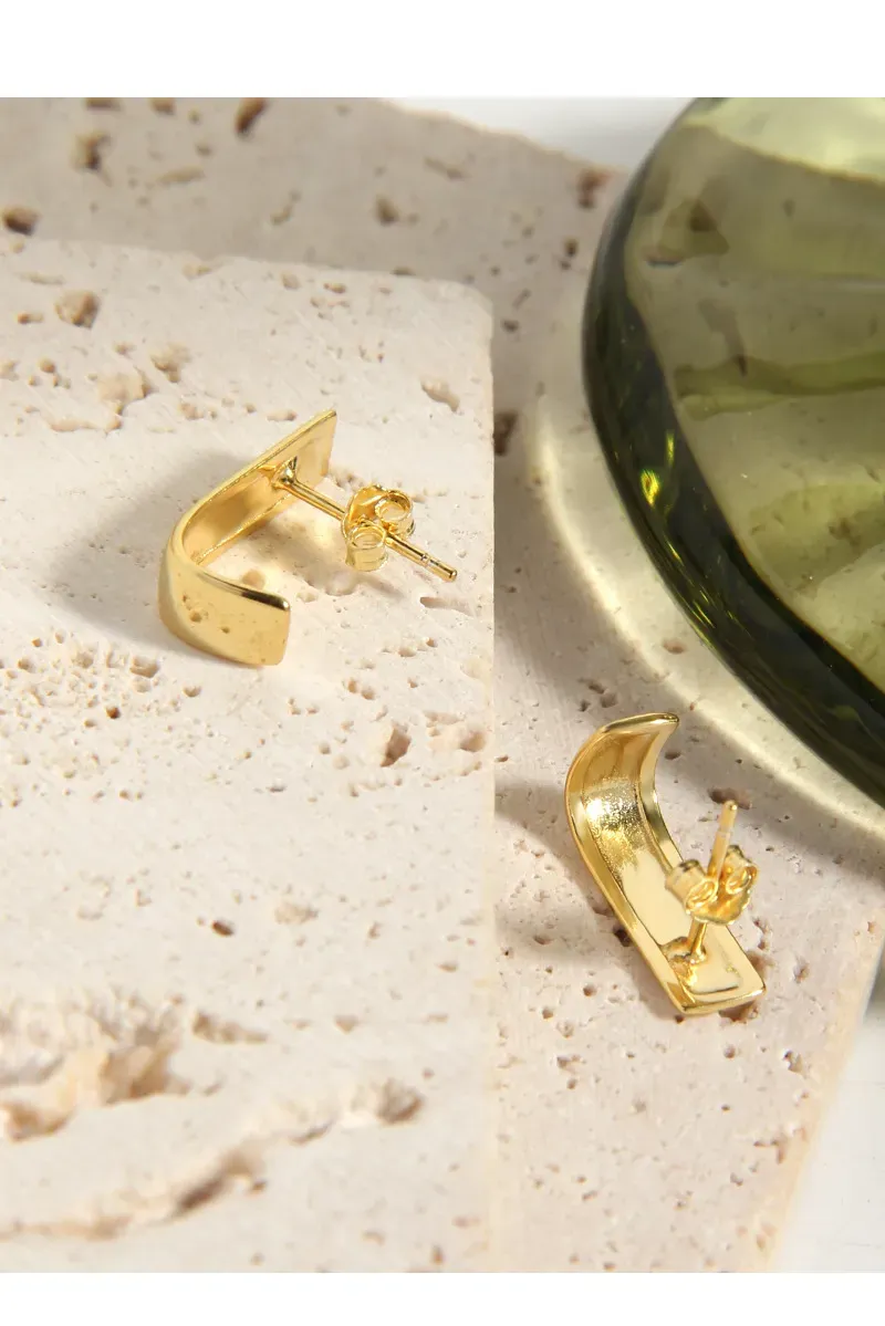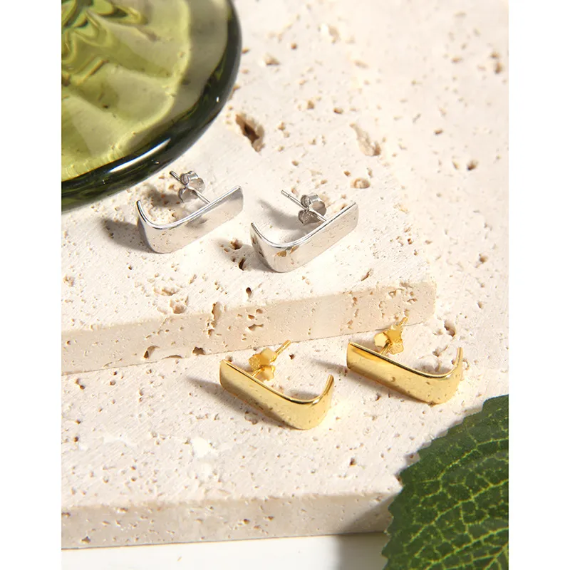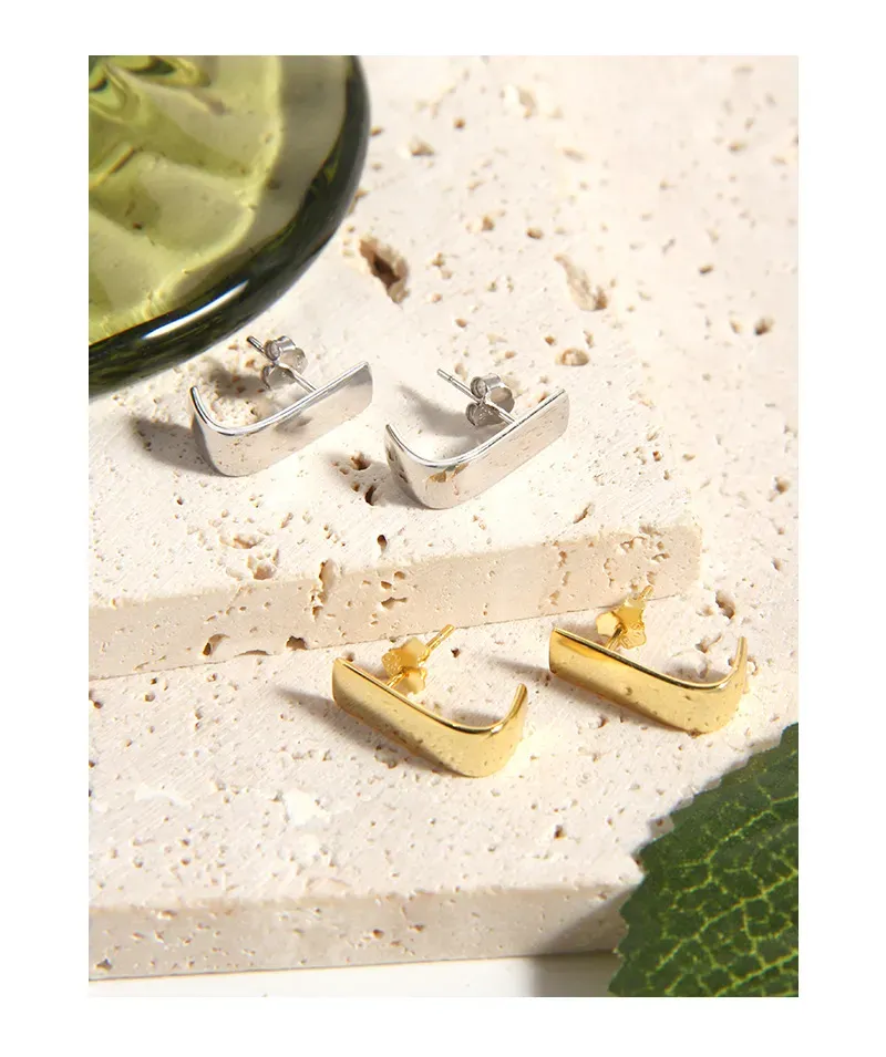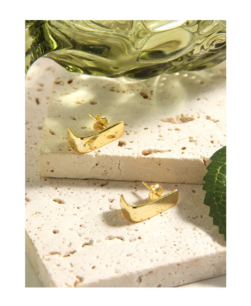 Style: Featuring a unique and gracefully curved bar design, these stud earrings are crafted to beautifully follow the natural contours of your earlobe. Their fluid shape offers a modern, minimalist silhouette, making a sophisticated statement that is both organic and contemporary.